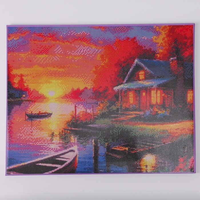 Алмазная вышивка полное заполнение «Дом у озера», на раме, 40?50 смВопросы по товару