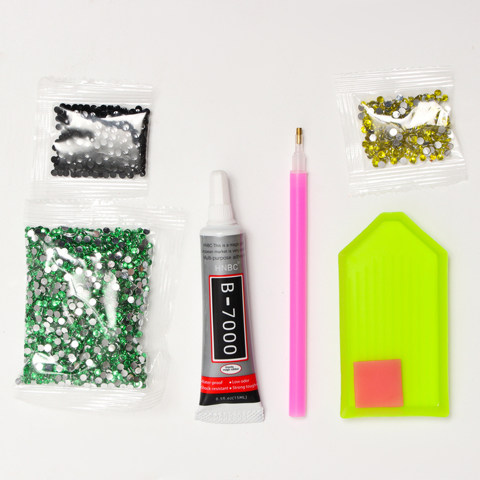 Этот набор позволит создать настоящий шедевр своими руками! Разложите кристаллики с помощью карандаша по указанной схеме, заполнив полотно. Тканевая основа с точечным клеевым покрытием будет надёжно у... Показать описаниедерживать стразы. На картине уже обозначены необходимые оттенки, а цветовая таблица расположена рядом с рабочей областью холста. А для того чтобы натянуть готовую картину на подрамник или вставить в раму, у холста предусмотрена дополнительная тканевая область. Сияющее полотно украсит любой интерьер и станет отличным подарком для близких. Комплектация * холст со схемой; * стразы; * поддон для стразов; * специальный карандаш; * клеевая подушечка.