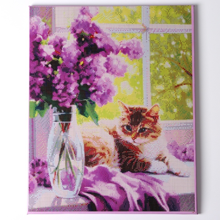 Алмазная мозаика с полным заполнением «Кот в цветах» 30?40 см, холст, ёмкостьВопросы по товару