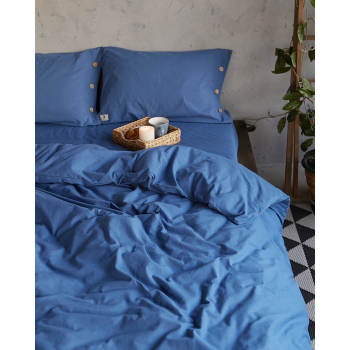 Постельное бельё 1.5-спальное «Этель», жатый хлопок, синее