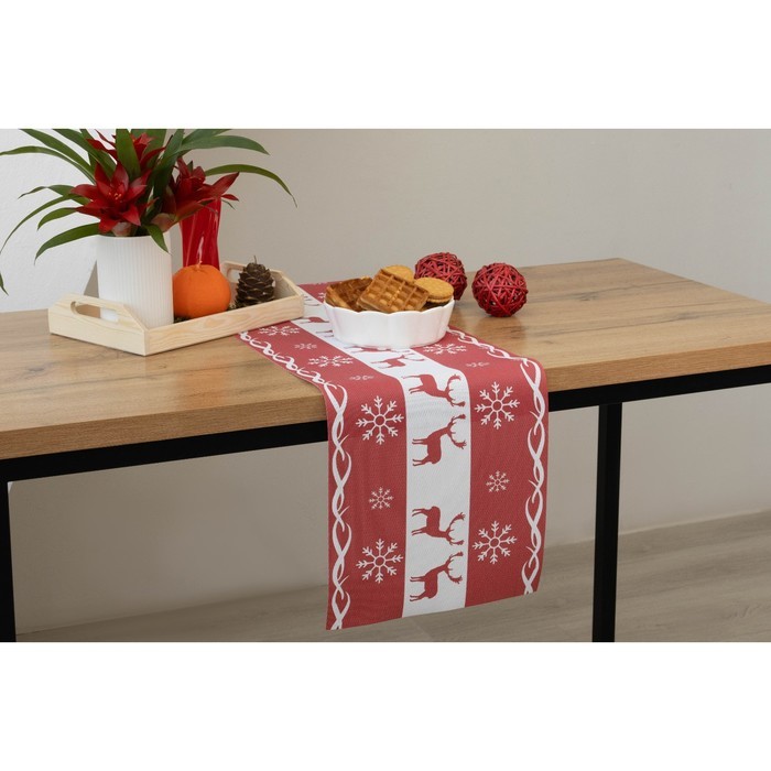 Дорожка на стол Доляна «Новый год», 180?30 см, красная