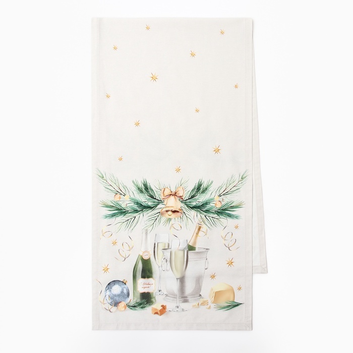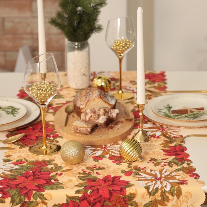 Дорожка на стол Доляна «Новый год», 180?30 см, бежевая