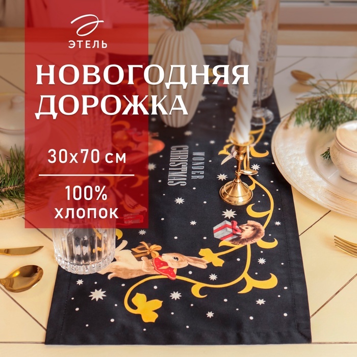 Дорожка на стол Этель Fairy tale 30?70 см, 100% хлопок, саржа 190 г/м?, чёрная