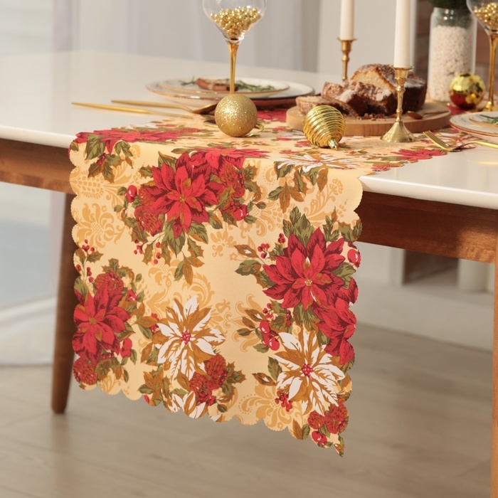 Дорожка на стол «Доляна. Новогодние цветы», белая, 35?180 см