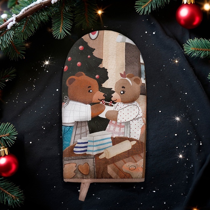 Варежка-прихватка новогодняя «Этель» Bears, 15?28 см, саржа, хлопок 100%, ватин 250 г/м?