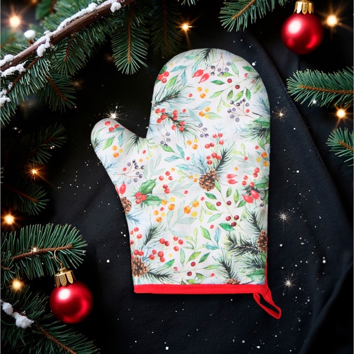 Варежка-прихватка Christmas flowers 20?27 см, саржа, 100% хлопок, ватин 250 г/м?
