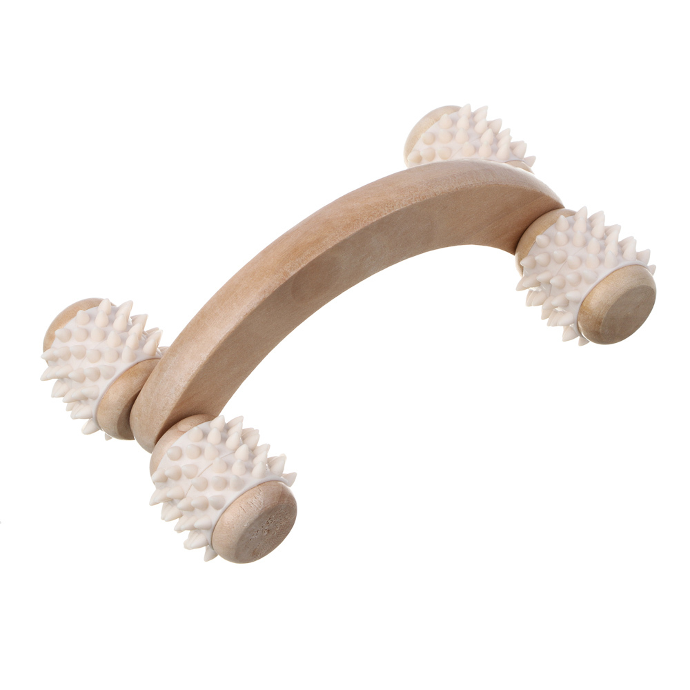 Массажный роллер SILAPRO «Max», 16,5х6х9 см с четырьмя роликами – это удобное приспособление для самомассажа любых частей тела. Корпус изделия выполнен из натурального качественно обработанного дерева... Показать описание. Массажные элементы из ПВХ глубоко проникают в мышцы, способствуя расслаблению, снятию болевых ощущений и устранению чувства скованности. Регулярный массаж дарит чувство бодрости и прилив сил.