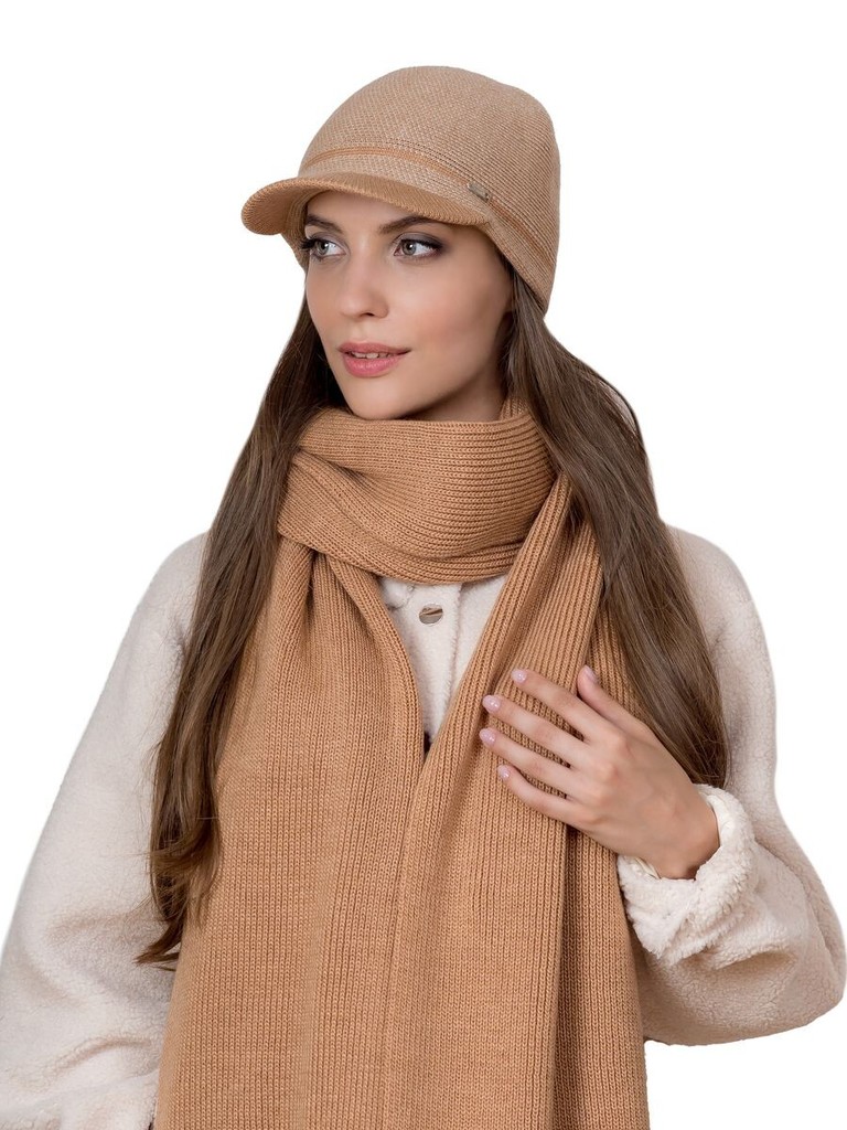 Объемная двойная кепка из полушерстяной пряжи. Мягкая вязаная модель кепки не колется, тянется и не сдавливает голову. Сбоку украшена фирменной металлической шильдой. Кепка глубокая и комфортная, хоро... Показать описаниешо закрывает уши от холода. Отличная альтернатива шапке для тех модниц, для кого кепка является любимым головным убором. Кепи НОНА станет отличным дополнением к вашему гардеробу, подойдет для сочетаний с пуховиками, куртками, пальто. Кепку можно дополнить палантином и перчатками.