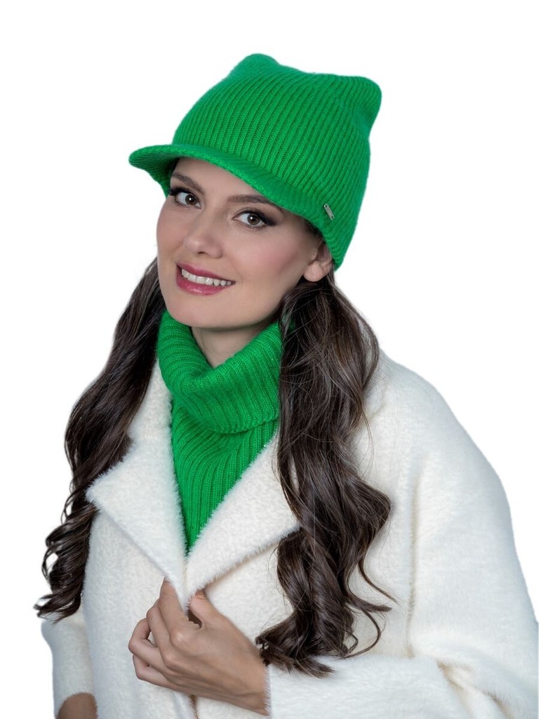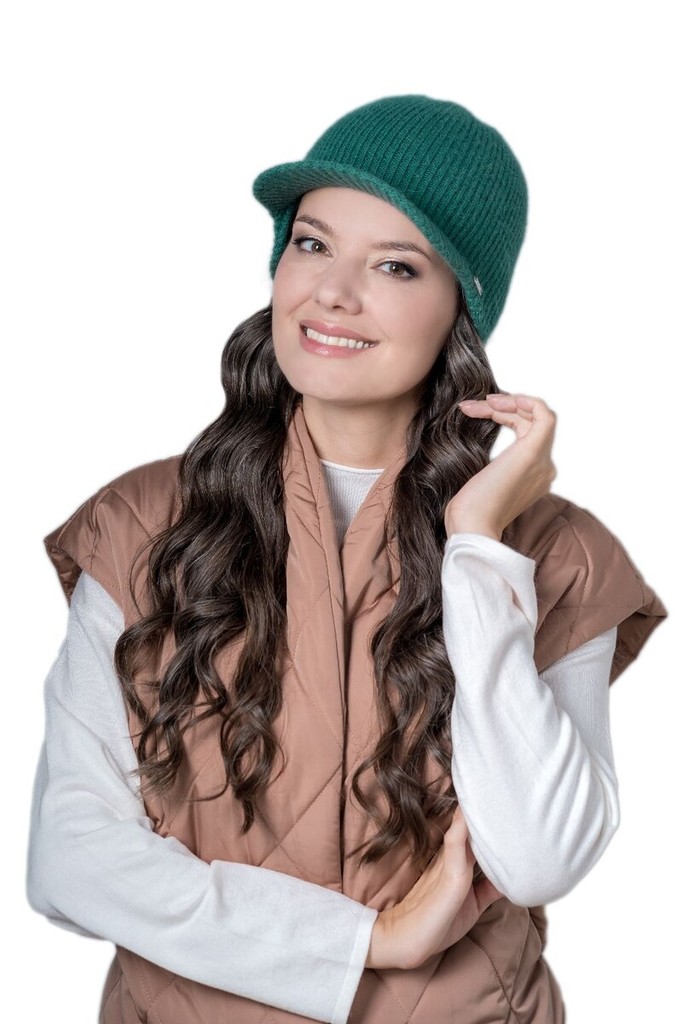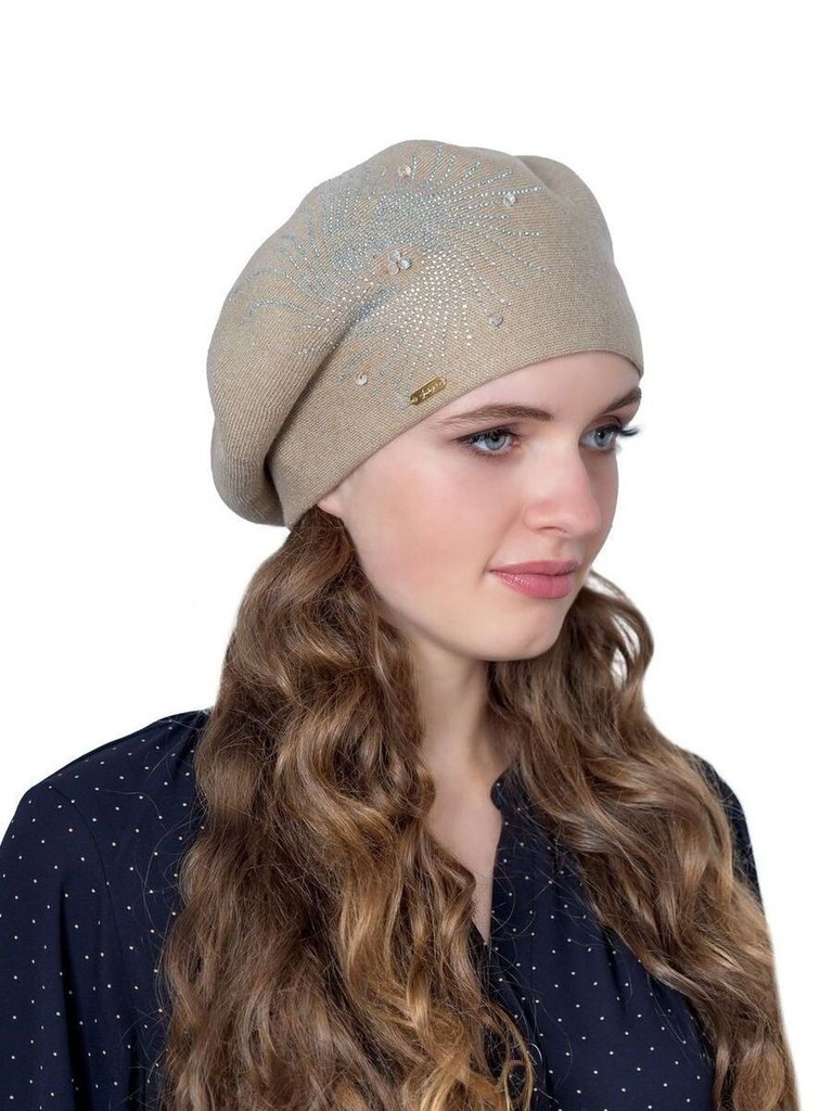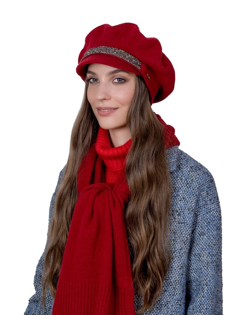 Женская объемная кепка, выполнена из высококачественной 100% шерсти мериноса. Планка над козыркем украшена стеклярусом. Кепка идеально подходит женщинам с большим размером головы и широким овалом лица... Показать описание. Диаметр кепки 29 см. Кепку можно дополнить шарфом и перчатками.