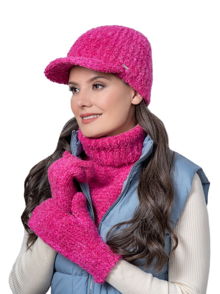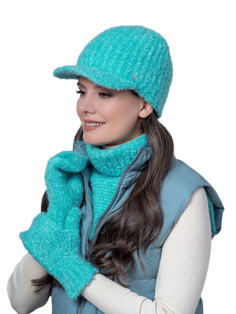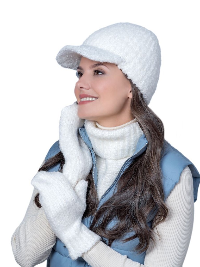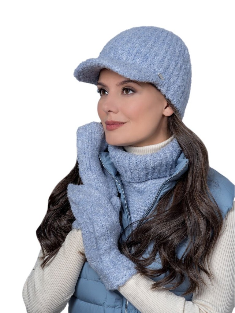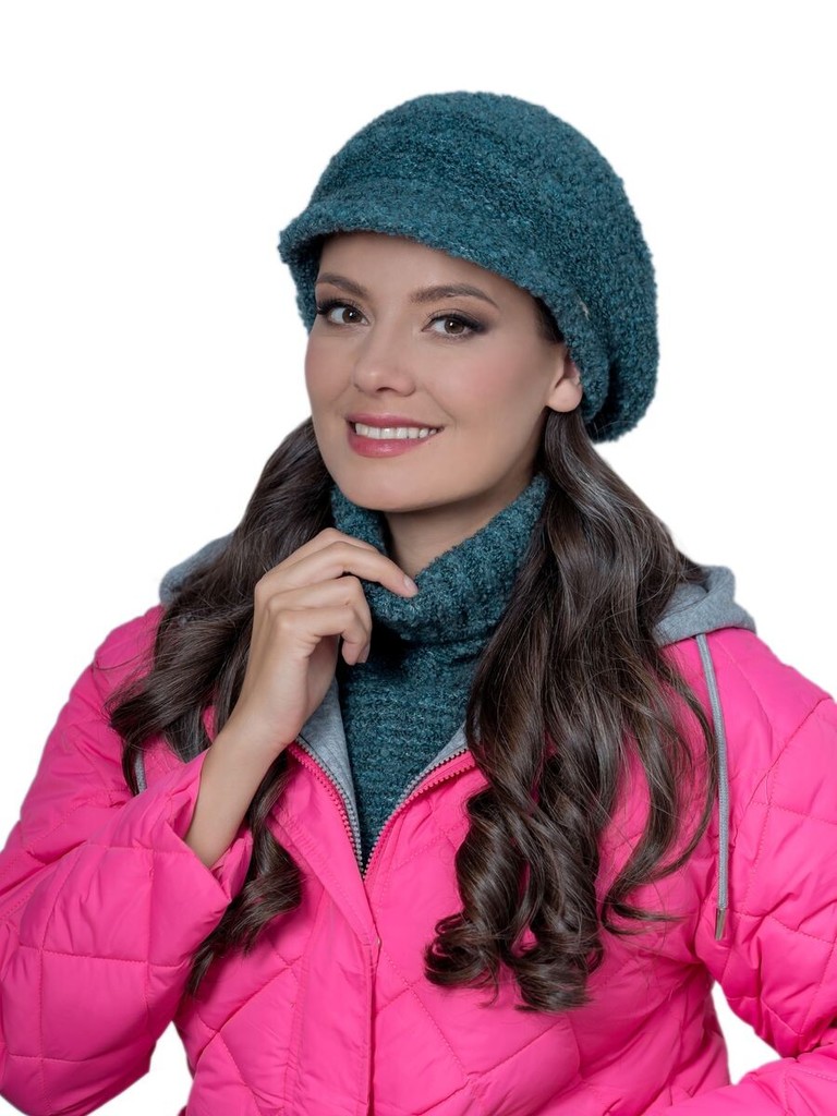 Зимняя теплая двойная кепка-бейсболка. Кепка выполнена из мохеросодержащей буклированной пряжи. Кепка глубокая, комфортная и теплая, полностью закрывает уши от холода. Длина козырька - 6 см. Мягкая вя... Показать описаниезаная модель зимней кепки не колется, тянется и не сдавливает голову. Отличная альтернатива шапке для тех модниц, для кого кепка является любимым головным убором. Кепка БОГДАНА станет отличным дополнением к вашему гардеробу, подойдет для сочетаний с пуховиками, куртками, пальто. Кепку можно дополнить манишкой ТОНИ, варежками САМИЯ.