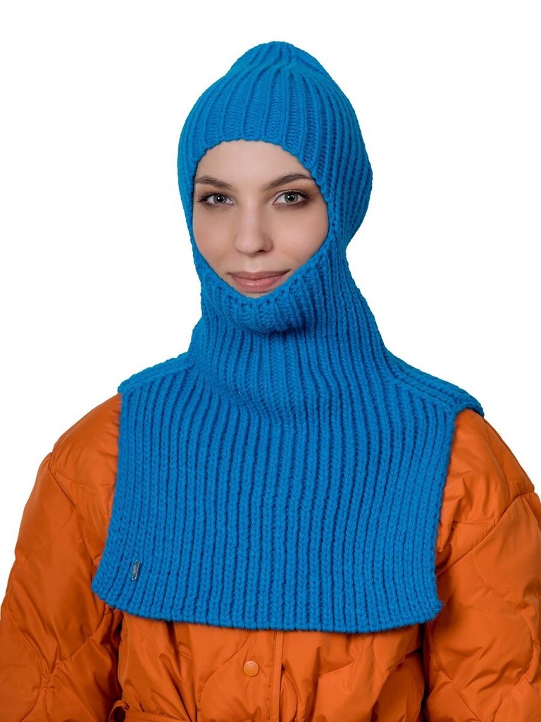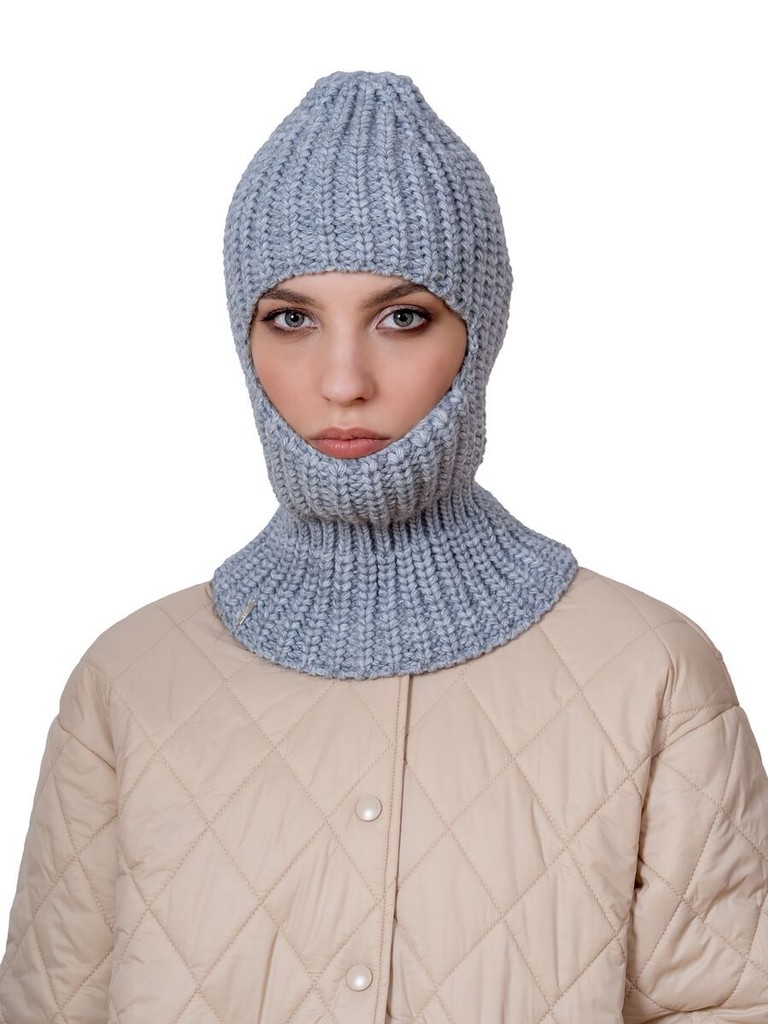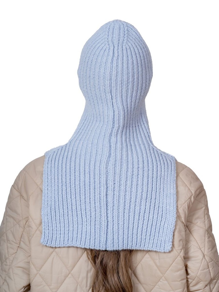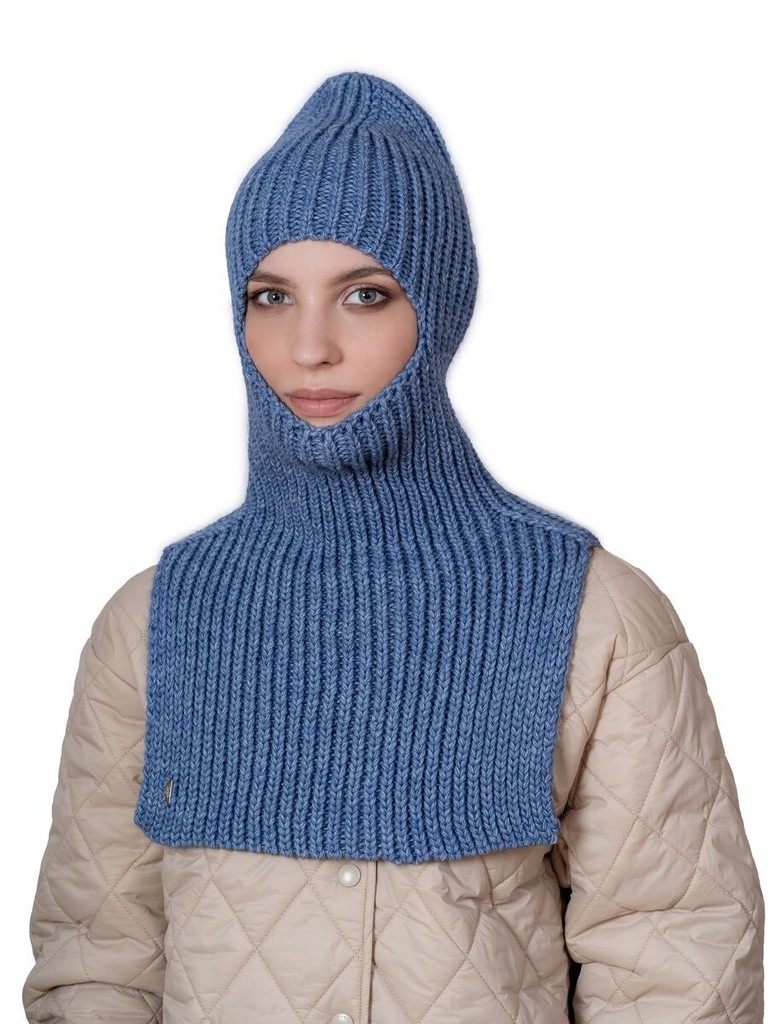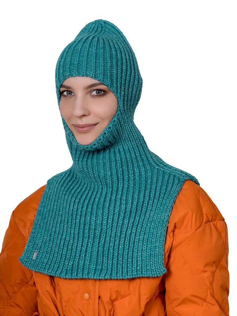 Молодежная вязаная балаклава. Это универсальный головной убор, который сочетается с любой верхней одеждой, создавая стильный образ. Балаклава дополнена аккуратной манишкой, надежно закрывающей шею и г... Показать описаниерудь от холодного воздуха. Балаклава выполнена из полушерстяной пряжи. Модель однослойная, объемной плотной вязки. Длина изделия - 60 см. Открытая балаклава с вырезом на пол-лица, объединяя функции сразу трех теплых аксессуаров: женской шапки, шарфа и защитной маски. Если станет жарко, Вы можете опустить балаклаву назад. Данная модель подойдет как женщинам, так и мужчинам.