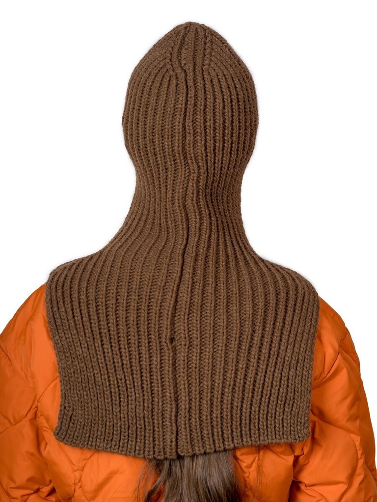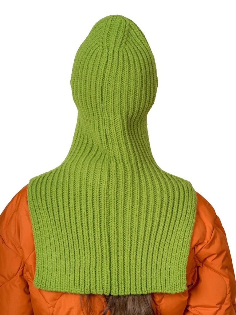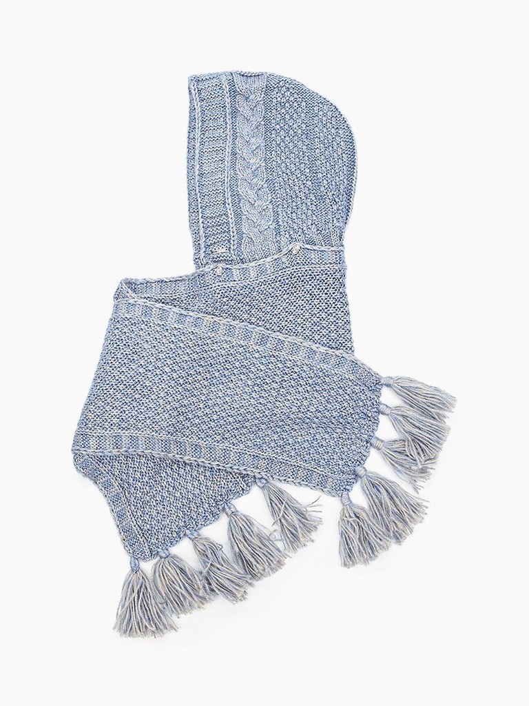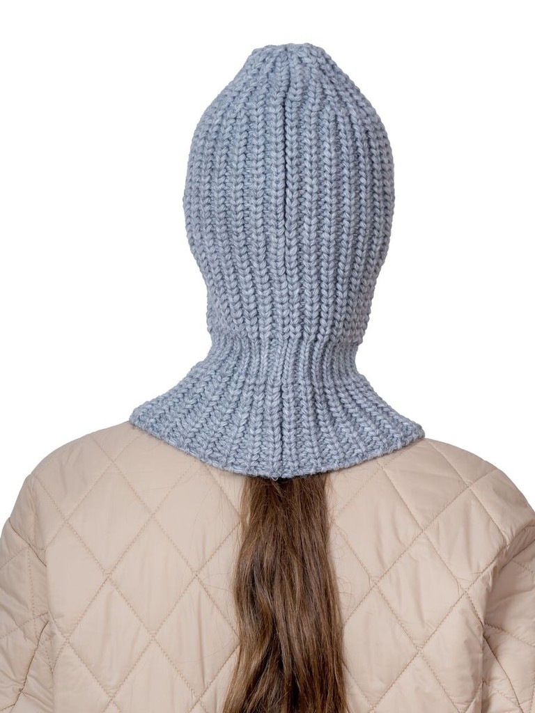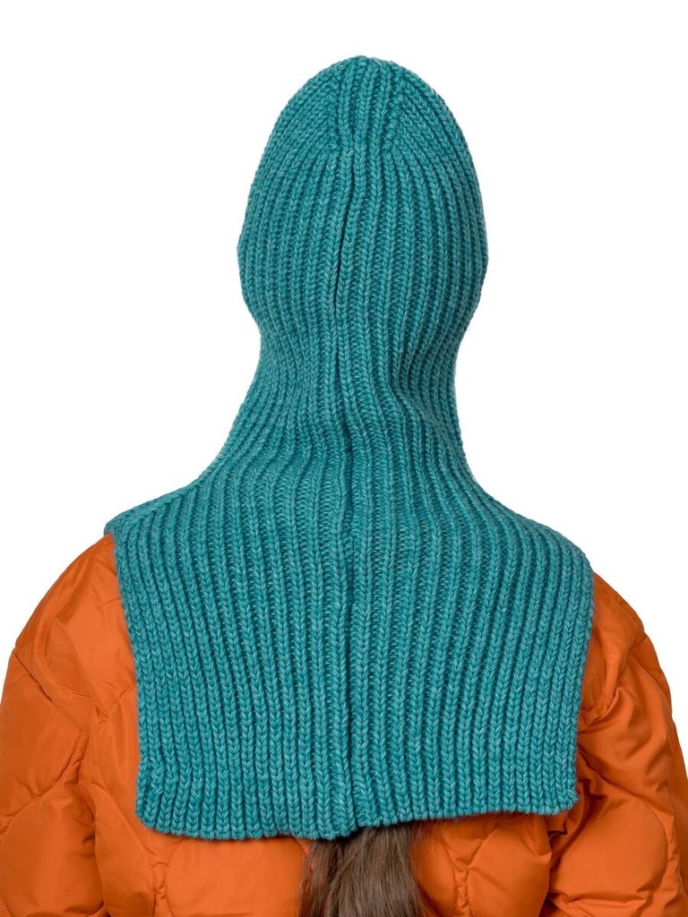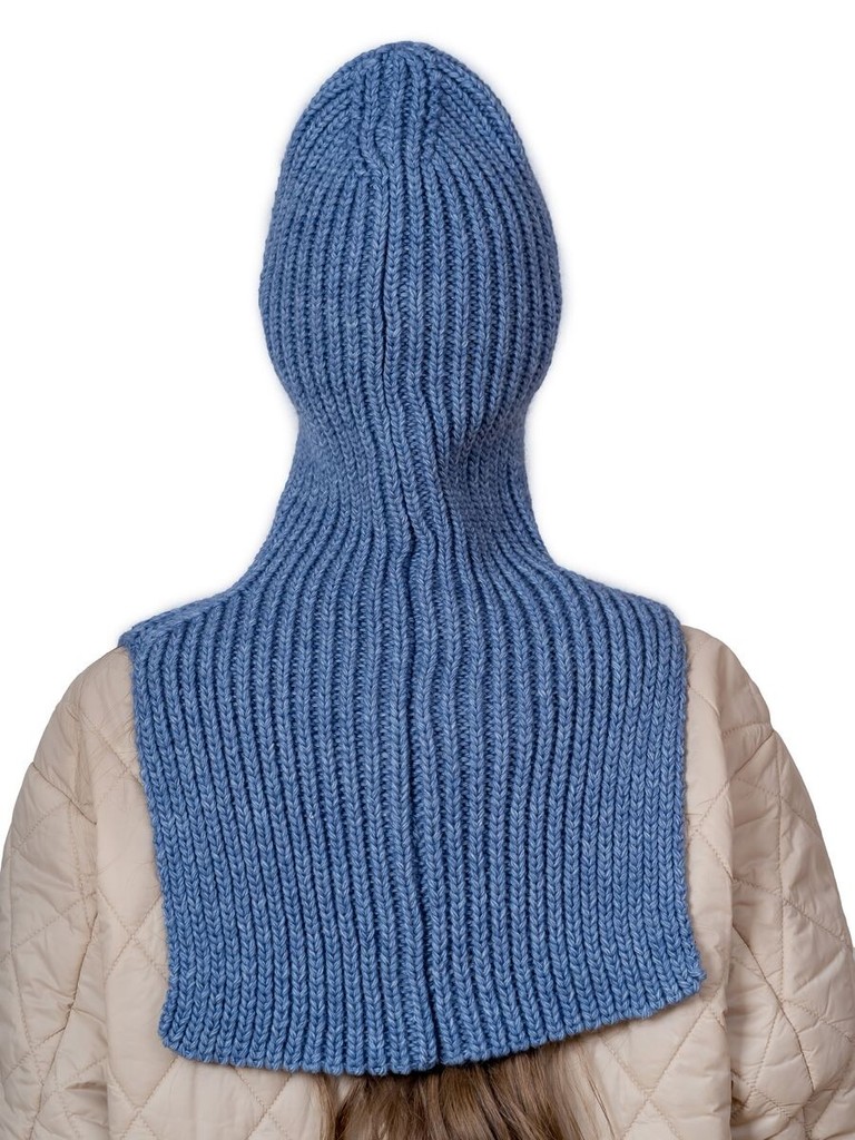 Молодежная вязаная балаклава. Это универсальный головной убор, который сочетается с любой верхней одеждой, создавая стильный образ. Балаклава дополнена аккуратной манишкой, надежно закрывающей шею и г... Показать описаниерудь от холодного воздуха. Балаклава выполнена из полушерстяной пряжи. Модель однослойная, объемной плотной вязки. Длина изделия - 60 см. Открытая балаклава с вырезом на пол-лица, объединяя функции сразу трех теплых аксессуаров: женской шапки, шарфа и защитной маски. Если станет жарко, Вы можете опустить балаклаву назад. Данная модель подойдет как женщинам, так и мужчинам.