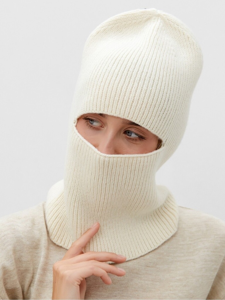 Молодежная вязаная балаклава. Это универсальный головной убор, который сочетается с любой верхней одеждой, создавая стильный образ. Балаклава выполнена из полушерстяной пряжи. Модель однослойная, объе... Показать описаниемной плотной вязки. Длина изделия - 41 см. Открытая балаклава с вырезом на пол-лица, объединяя функции сразу трех теплых аксессуаров: женской шапки, шарфа и защитной маски. Если станет жарко, Вы можете опустить балаклаву назад. Данная модель подойдет как женщинам, так и мужчинам.