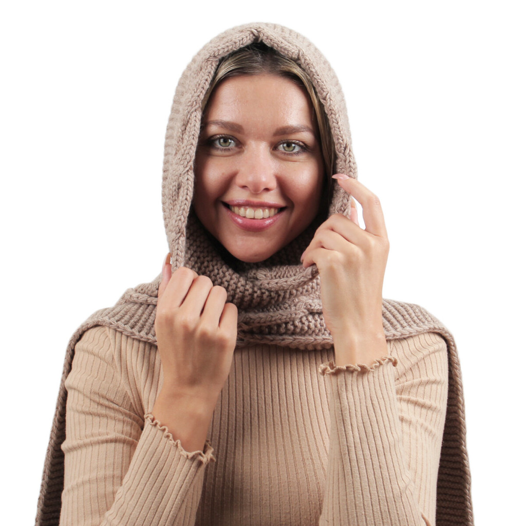 Однотонный женский капор «Flioraj» для весеннего, осеннего и зимнего сезона - стильный и практичный головной убор, который сочетает в себе функции [шапки], съемного капюшона и [шарфа]. [Шапочка] изгот... Показать описаниеовлена из качественных и мягких материалов, в состав которых входит: овечья шерсть, мохер, полиамид и акрил. Благодаря своей конструкции, капор плотно прилегает к голове, защищая от ветра и холода. Головной убор имеет универсальный дизайн, который подходит для повседневной носки и активного отдыха. [Шарф] подходит взрослым и подросткам, выполнен крупной вязкой и декорирован «косами». Капор удобный и стильный головной убор, который не только защитит от непогоды, но и станет дополнением к повседневному образу.