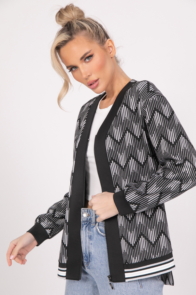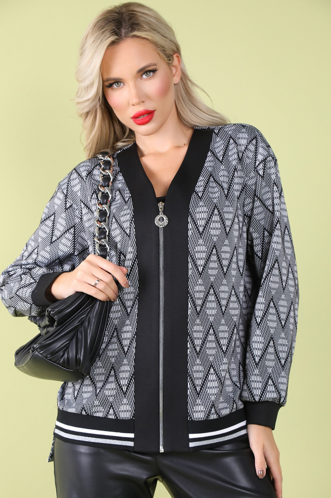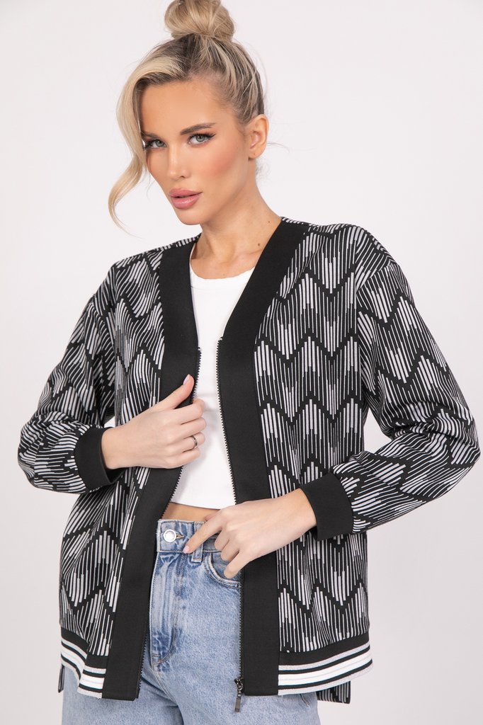 Состав: 60% п/э; 30% вискоза; 10% эластан Описание Кардиган “Линия успеха” для повседневного образа, соединяет в себе качество и комфорт. V-образный вырез горловины, длинный рукав на манжете, замок и ... Показать описаниедекоративная отделка – добавляет Вашему образу стильный акцент. Материал: трикотаж. Принт: отсутствует. Вид застежки: замок Карманы: отсутствуют Подкладка: отсутствует Размер изделия на модели: 44. Рост модели: 172 см Параметры модели: 88-63-96