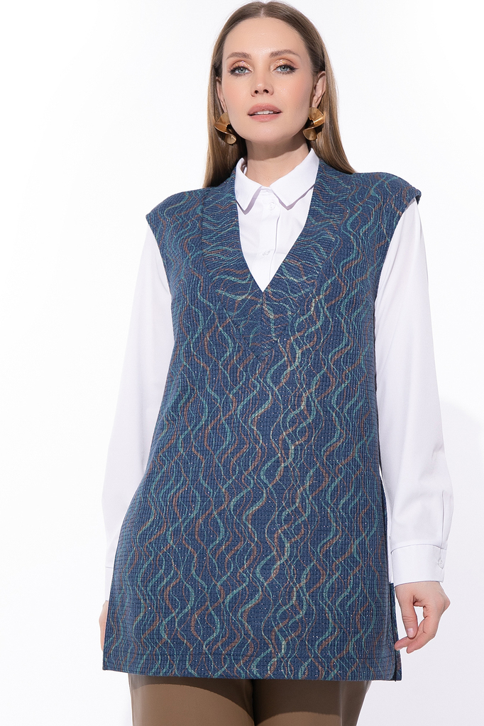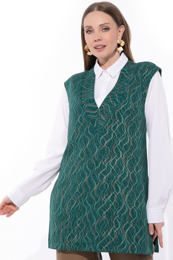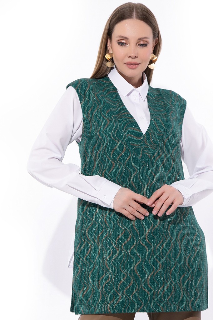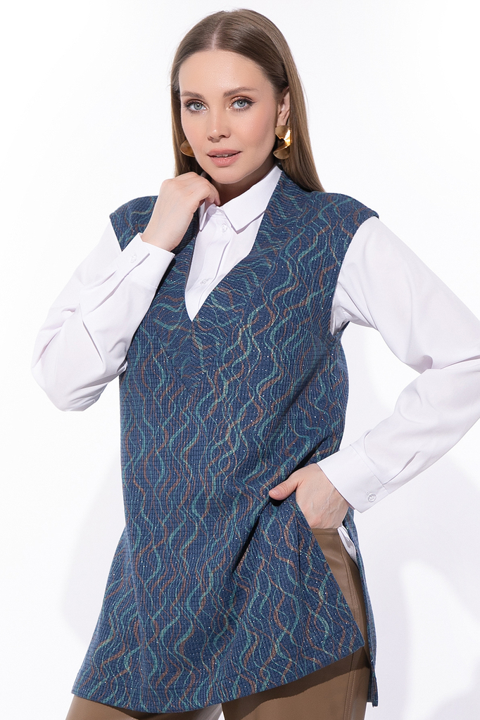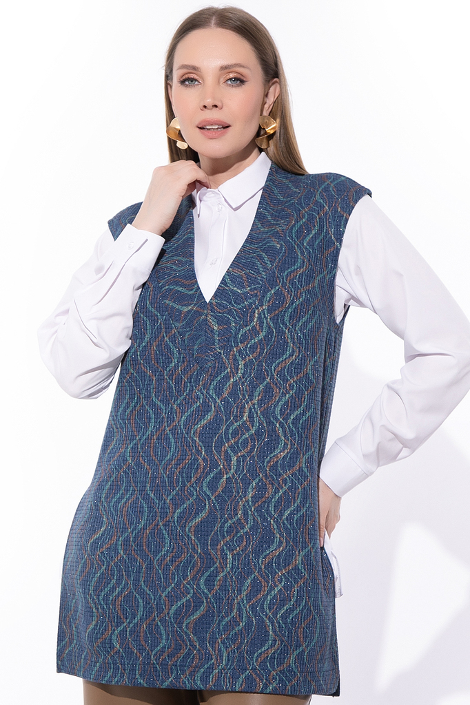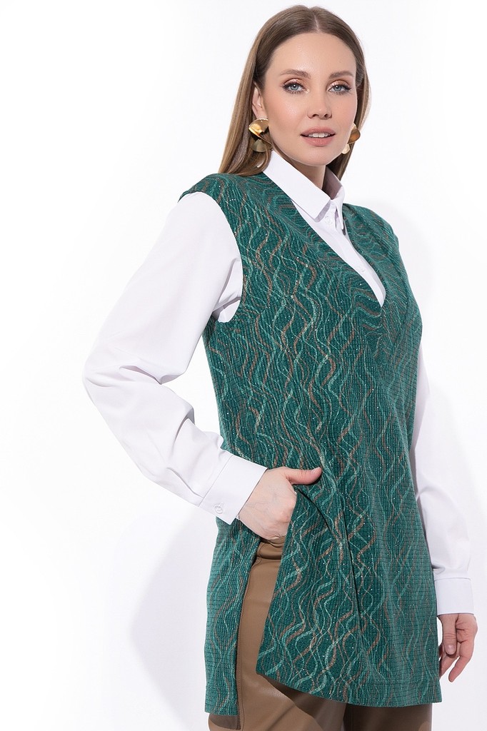 Состав: П/э 65%; вискоза 35%; эластан 10% Описание Жилет “Элли” – это идеальный выбор для стильных и утонченных леди , которые ценят комфорт и качество. Материал: трикотаж Силуэт: свободный Карманы: о... Показать описаниетсутствуют Подкладка: отсутствует Длина: 46-54 р – 61 см Размер изделия на модели: 44 Рост модели: 172 см Параметры модели: 88-63-96