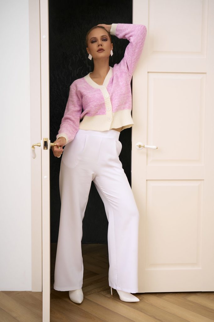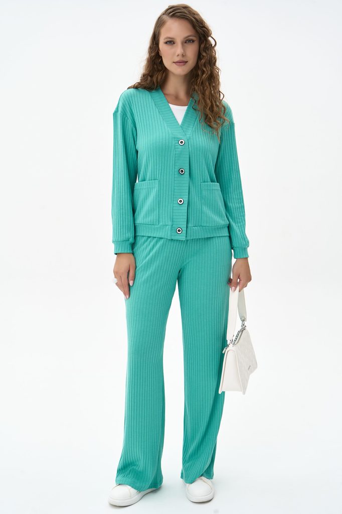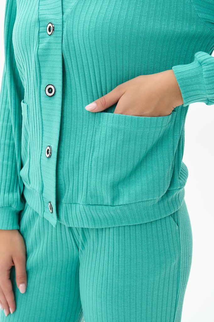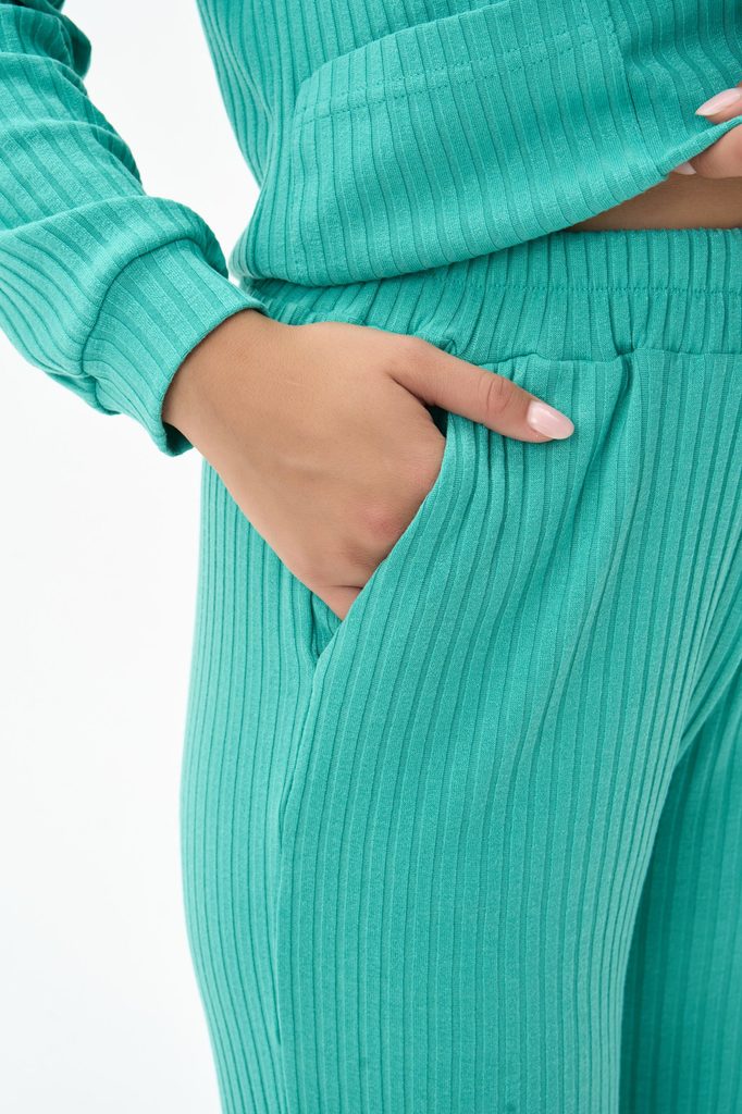 Состав: 55% – вискоза, 45%-п/э, 5%-эластан Описание Модный брючный костюм из трикотажа “лапша” прекрасно подойдет на осенний и зимний сезон. Состоит из модного бомбера с широкими штанами. талия у брюк... Показать описание на резинке, карманы. Бомбер с планкой на пуговицах, накладные карманы. Материал: трикотаж Принт: отсутствует Вид застежки: пуговицы Карманы: есть Резинка в поясе: есть Силуэт: свободный Длина верха: 46-48р -57 см, 50-52р – 59 см Длина брюк: 46-48р – 105, 50-52р – 107 см Размер изделия на модели: 46 Рост модели: 172 см
