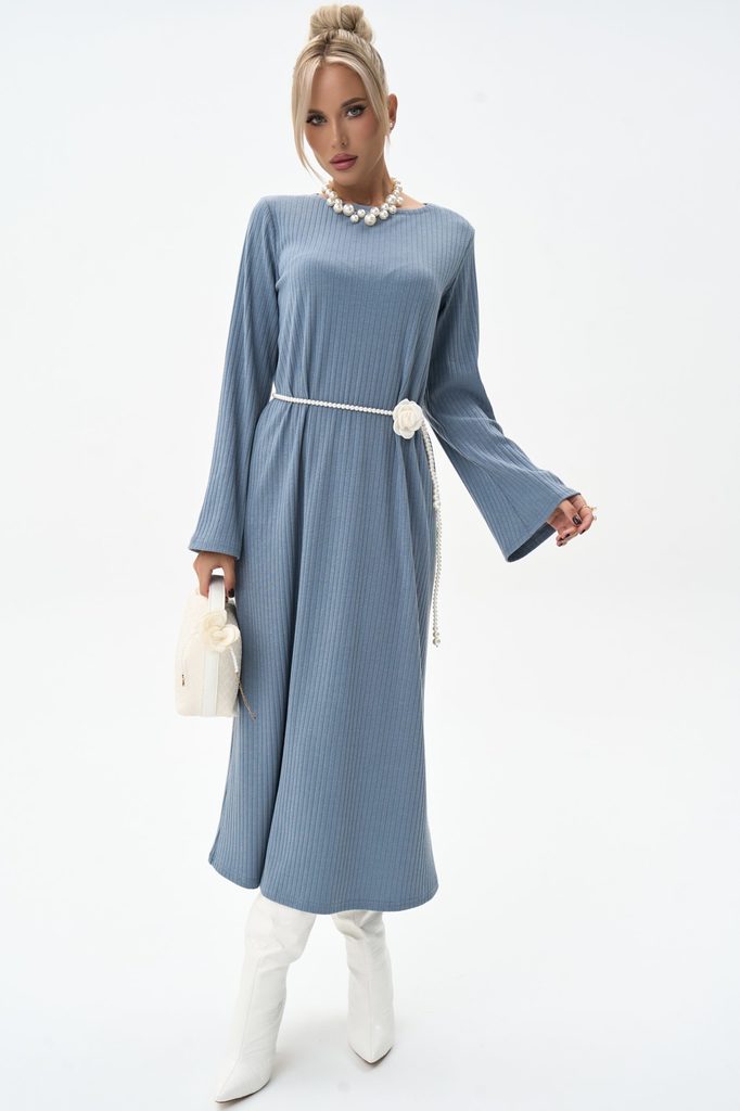 Состав: 55% – вискоза, 45%-п/э, 5%-эластан Описание Выполнено из мягкого, приятного к телу трикотажа — комфортно носить весь день. Фактура «лапша» визуально вытягивает силуэт, делая фигуру стройнее. П... Показать описаниерямой крой с длинным рукавом — универсальная модель для офиса, прогулок и повседневного стиля. Лаконичный дизайн легко дополняется аксессуарами: можно создавать как элегантные, так и расслабленные образы. Оптимальная длина миди — смотрится стильно с обувью на каблуке и с ботинками без него. Два базовых оттенка: нежный бежевый и свежий голубой. Практичная модель на каждый день и для межсезонья. Подходит женщинам разных возрастов и типов фигуры. Легко комбинируется с верхней одеждой и аксессуарами. (пояс в стоимость не входит)