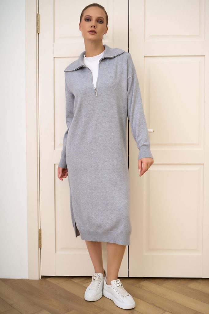Состав: Шерсть – 70%, п/э – 20, хлопок – 10% Описание Уютное и элегантное платье прямого силуэта из мягкого трикотажа с содержанием шерсти. Теплое, но дышащее, держит форму и не стесняет движений. Уни... Показать описаниеверсальные цвета легко сочетается с аксессуарами и обувью любого стиля. Длина ниже колена визуально вытягивает силуэт, а лаконичный вырез и длинный рукав делают модель практичной для работы, прогулок и встреч. Минимализм кроя подчеркивает качество материала и дарит безупречный комфорт каждый день. Материал: трикотаж – теплый, мягкий, держит форму. Фактура: вязаный трикотаж, приятный к телу, с аккуратной посадкой. Цвет: универсальный серый, легко комбинируется с аксессуарами. Силуэт: прямой, лаконичный, не сковывает движения. Длина: ниже колена – вытягивает фигуру, делает образ элегантным. Рукава: длинные, комфортные под верхнюю одежду. Вырез: круглый, минималистичный. Стиль: базовый, подходит для офиса, прогулок и повседневных образов. Рост модели: 172 см Параметры модели: 88-63-100