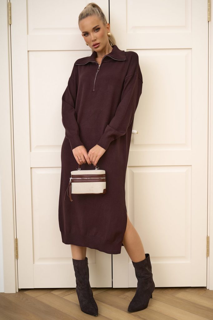 Состав: Шерсть – 70%, п/э – 20, хлопок – 10% Описание Уютное и элегантное платье прямого силуэта из мягкого трикотажа с содержанием шерсти. Теплое, но дышащее, держит форму и не стесняет движений. Уни... Показать описаниеверсальные цвета легко сочетаются с аксессуарами и обувью любого стиля. Длина ниже колена визуально вытягивает силуэт, а лаконичный вырез и длинный рукав делают модель практичной для работы, прогулок и встреч. Минимализм кроя подчеркивает качество материала и дарит безупречный комфорт каждый день. Материал: трикотаж – теплый, мягкий, держит форму. Фактура: вязаный трикотаж, приятный к телу, с аккуратной посадкой. Цвет: универсальный шоколадный, легко комбинируется с аксессуарами. Силуэт: прямой, лаконичный, не сковывает движения. Длина: ниже колена – вытягивает фигуру, делает образ элегантным. Рукава: длинные, комфортные под верхнюю одежду. Вырез: круглый, минималистичный. Стиль: базовый, подходит для офиса, прогулок и повседневных образов.
