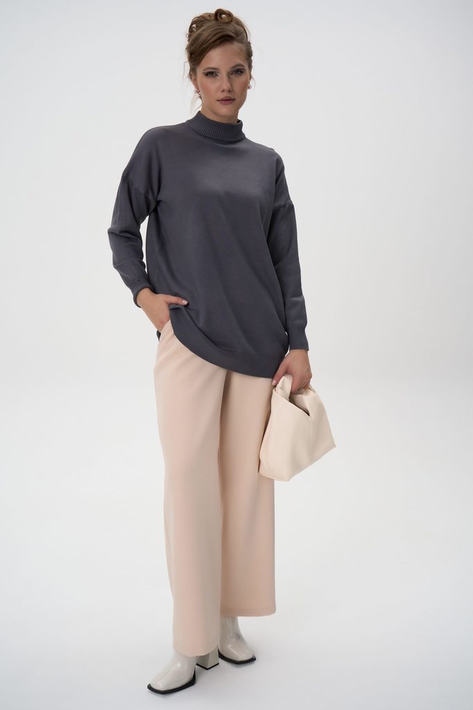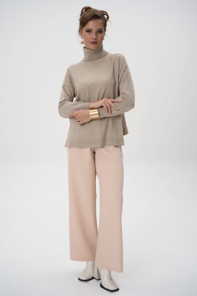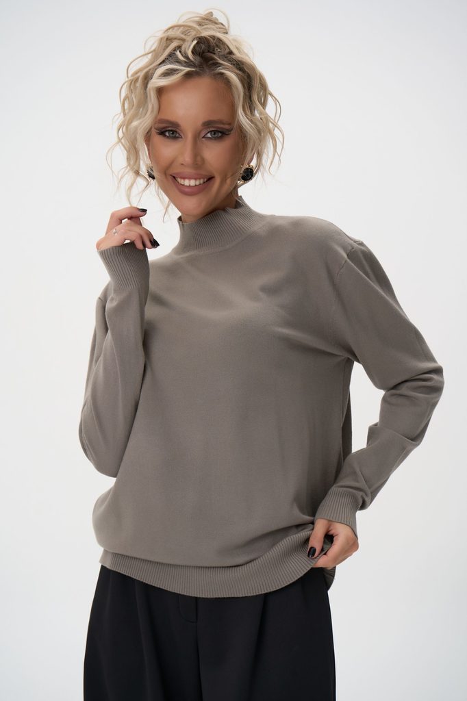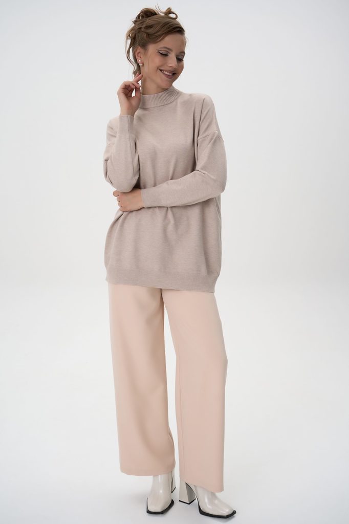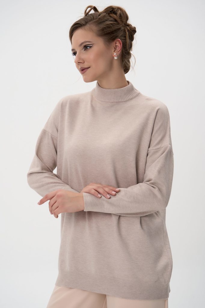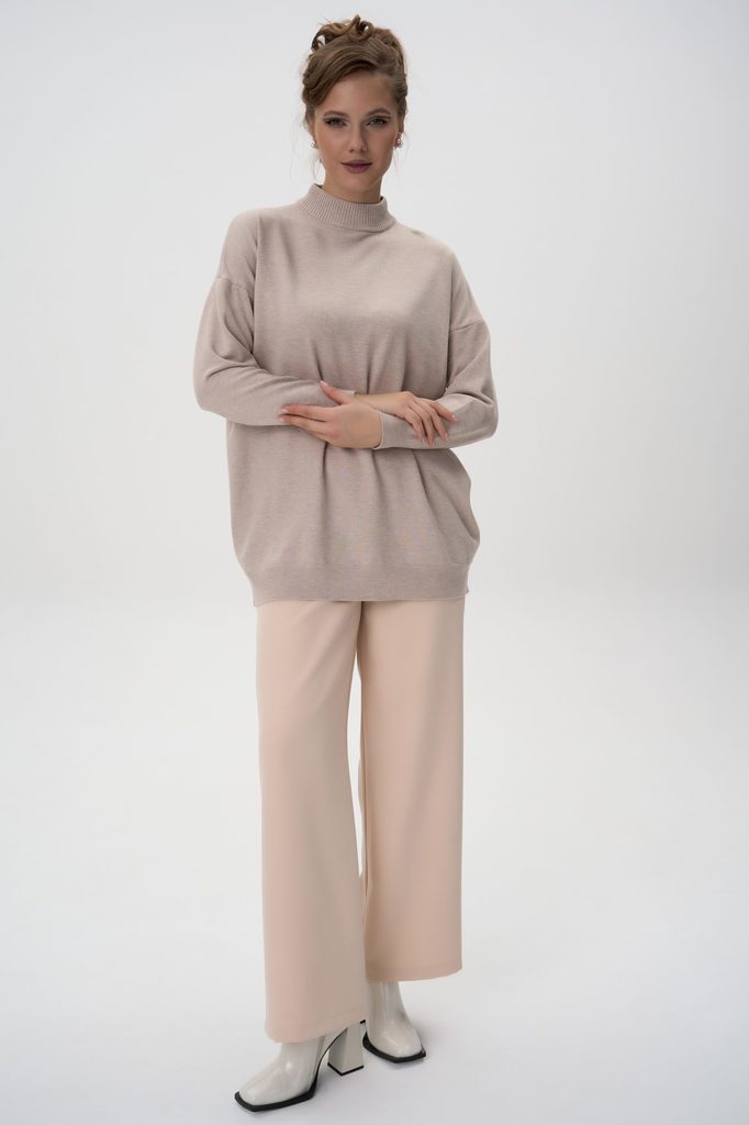 Состав: Хлопок – 50%, кашемир – 35%, шерсть – 10%, эластан – 5% Описание Уютный джемпер из мягкого вязаного трикотажа с добавлением хлопка и кашемира. Модель стандартной длины с прямым силуэтом и клас... Показать описаниесическим круглым вырезом. Эластичные манжеты и низ обеспечивают аккуратную посадку и комфорт в носке. Размер: единый (подходит на 46–54). Благодаря свободному силуэту и эластичной фактуре трикотажа, пуловер комфортно садится по фигуре разного типа — подчёркивает линию плеч, не обтягивает и создаёт аккуратный силуэт. Длина: ( 73 см, рукав 43 см). Детали и конструкция: Свободный силуэт; Классический круглый вырез горловины; Длинные рукава с аккуратной посадкой (не обтягивают); Эластичная нижняя кромка и манжеты для аккуратного завершения силуэта; Трикотаж средней плотности — тёпло и комфортно для межсезонья