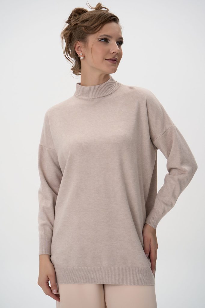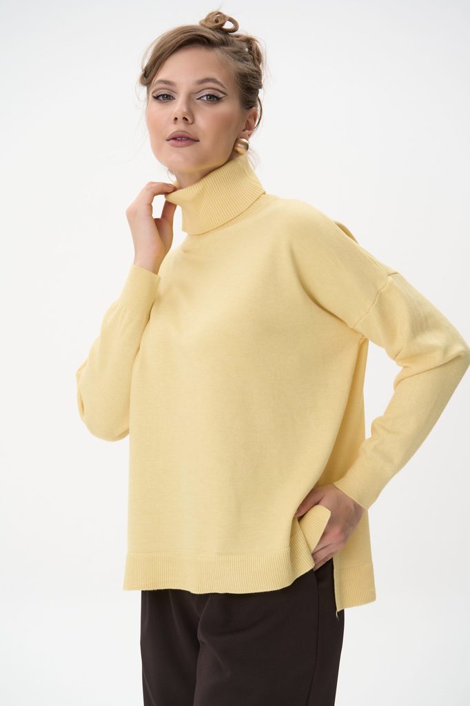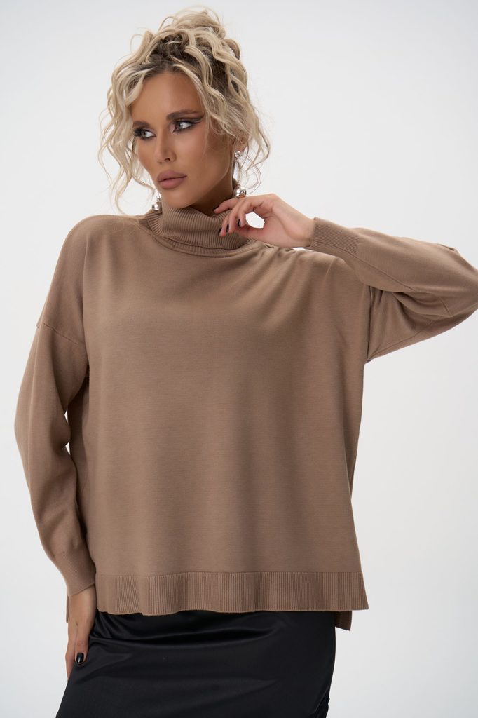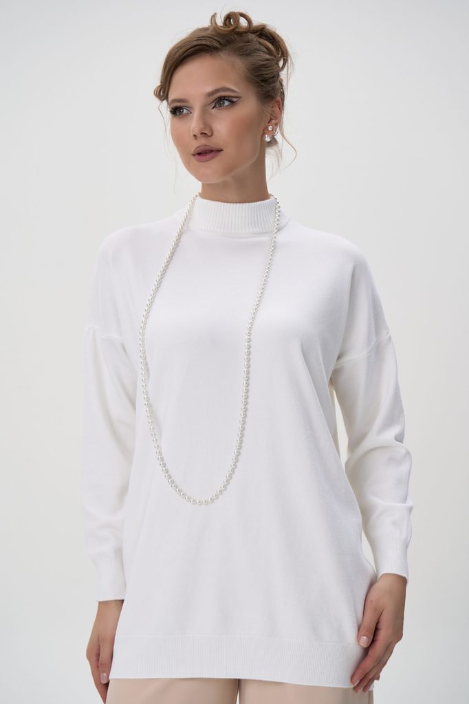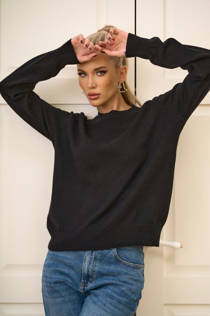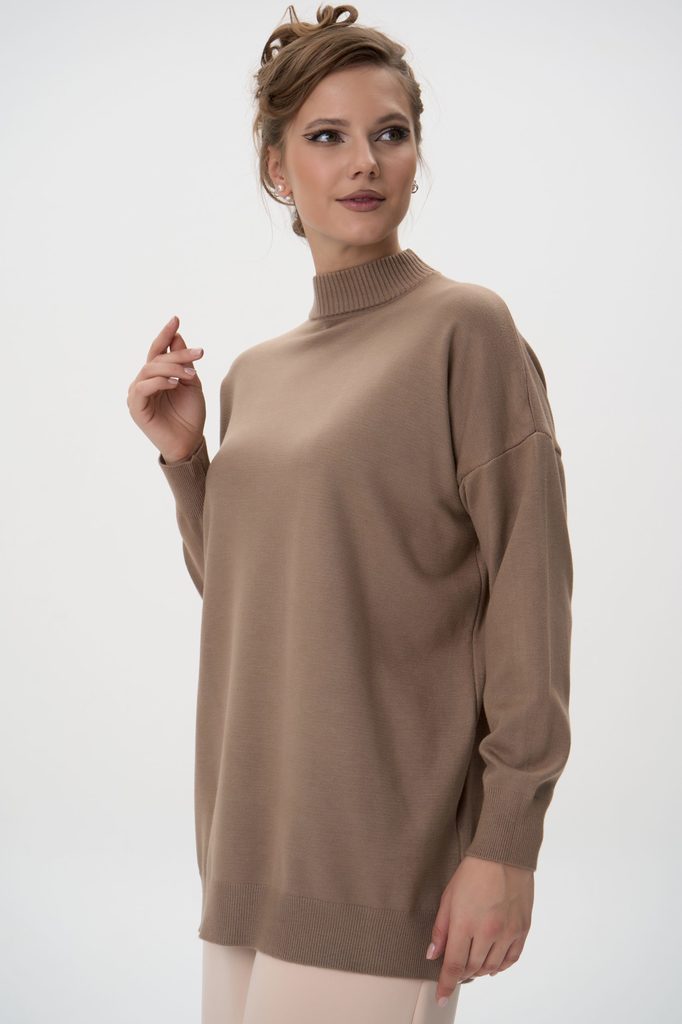 Состав: Хлопок – 50%, кашемир – 35%, шерсть – 10%, эластан – 5% Описание Уютный джемпер из мягкого вязаного трикотажа с добавлением хлопка и кашемира. Модель стандартной длины с прямым силуэтом и клас... Показать описаниесическим круглым вырезом. Эластичные манжеты и низ обеспечивают аккуратную посадку и комфорт в носке. Размер: единый (подходит на 46–54). Благодаря свободному силуэту и эластичной фактуре трикотажа, пуловер комфортно садится по фигуре разного типа — подчёркивает линию плеч, не обтягивает и создаёт аккуратный силуэт. Длина: ( 73 см, рукав 43 см). Детали и конструкция: Свободный силуэт; Классический круглый вырез горловины; Длинные рукава с аккуратной посадкой (не обтягивают); Эластичная нижняя кромка и манжеты для аккуратного завершения силуэта; Трикотаж средней плотности — тёпло и комфортно для межсезонья