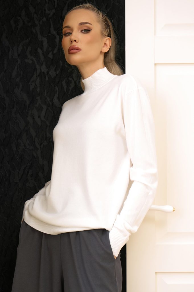 Состав: Хлопок – 50%, кашемир – 35%, шерсть – 10%, эластан – 5% Описание Элегантный джемпер «Эмма» из мягкого трикотажа — универсальная модель на каждый день и для выхода. Лаконичный дизайн и насыщенн... Показать описаниеые оттенки добавят тепла и яркости образу. Длины: ( 61 см, рукав 41 см). Состав ткани: – 50 % хлопок — натуральная и дышащая нить, обеспечивает мягкость и комфорт; – 35 % кашемир — придаёт тепло, легкость и приятную текстуру; – 10 % шерсть — дополнительное утепление и уют; – 5 % эластан — эластичность, свобода движений и сохранение формы. Детали модели: Прямой чуть свободный силуэт — не сидит в обтяжку, создаёт аккуратный образ. Классический круглый вырез горловины. Длинные рукава с лёгкой посадкой (не облегают сильно). Трикотаж средней плотности — приятный на ощупь и достаточно тёплый для межсезонья. Размер: единый, подходит на 46–54 Благодаря текстуре и эластичности, модель тянется и адаптируется к параметрам разной фигуры. Свободный крой без плотно обтягивающих элементов обеспечивает комфорт и свободу движений.