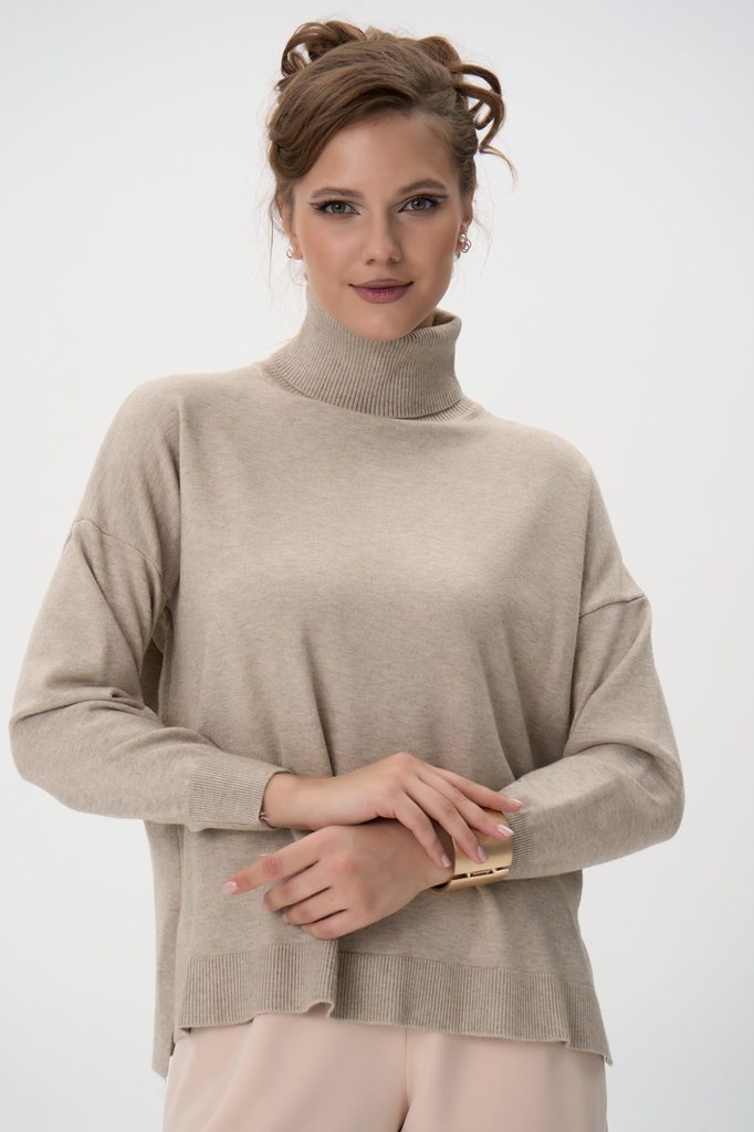 Состав: Хлопок – 50%, кашемир – 35%, шерсть – 10%, эластан – 5% Описание Элегантная и универсальная водолазка — базовая вещь, которая гармонично впишется в ваш гардероб. Благодаря натуральному составу... Показать описание она приятна к телу, хорошо держит форму и согревает в прохладные дни. Натуральные материалы — дышащий хлопок, нежный кашемир и тёплая шерсть. Универсальность — идеально смотрится и с юбкой, и с брюками, и под жакет. Комфорт в носке — мягкая, не колется, подходит даже для чувствительной кожи. Актуальный дизайн — лаконичная посадка и горло делают образ современным. Практичность — легко стилизуется, подходит для офиса, прогулок и вечерних выходов. Рост модели: 172 см Параметры модели: 88-63-96