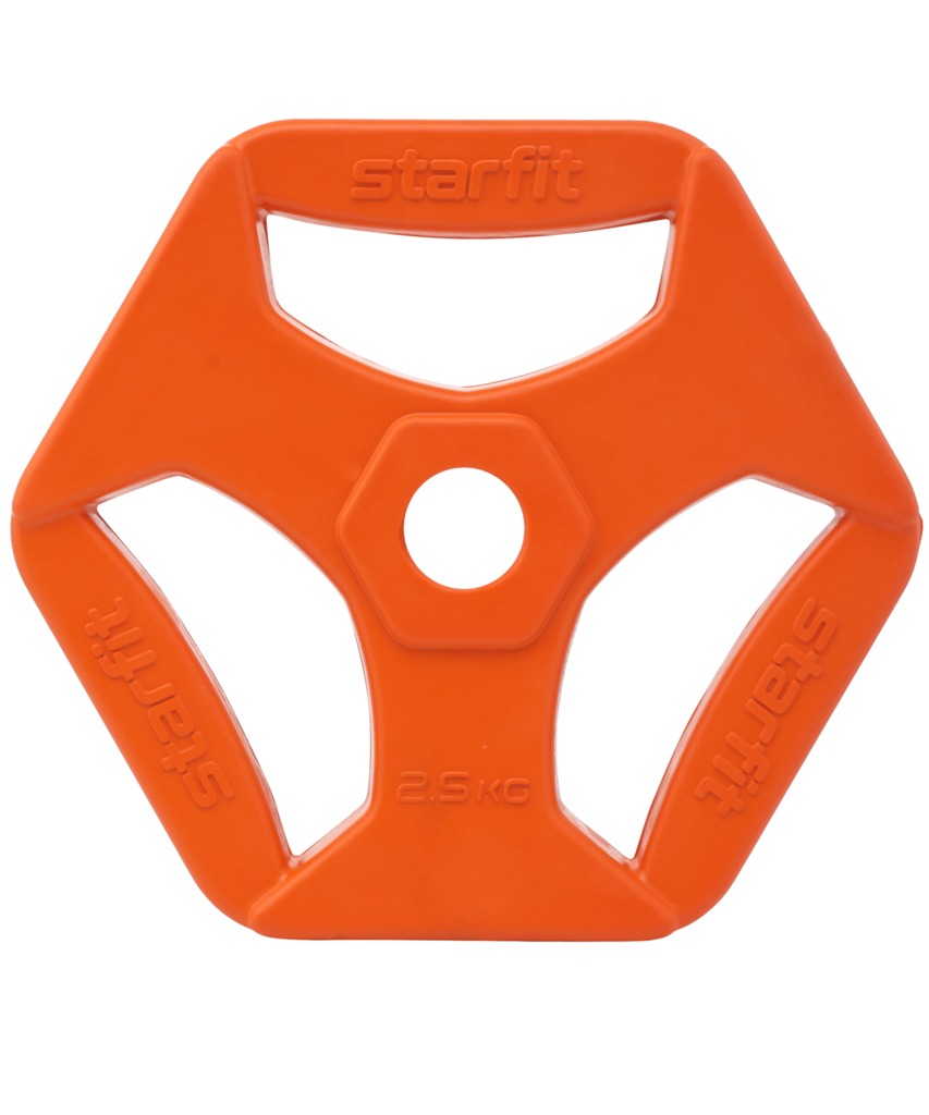 Диск обрезиненный с хватами STARFIT BB-205 d=26 мм, без стальной втулки, оранжевый, 2,5 кгВопросы по товару