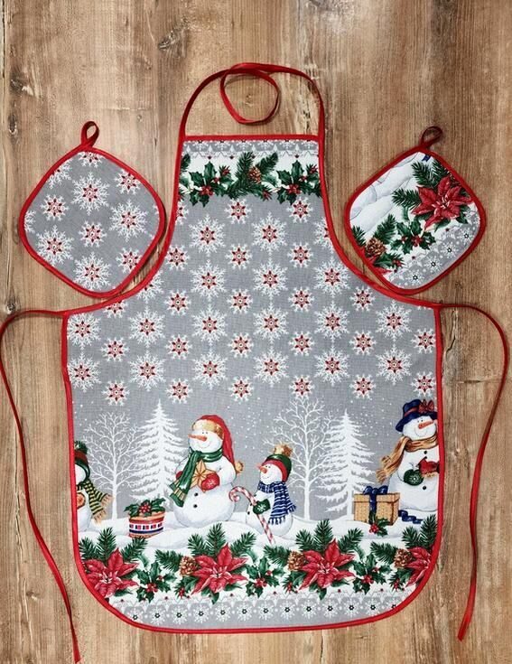 Кухонный набор "Новогодние снеговики"-сер. 3 пр. рогожка хлопок 100%Вопросы по товару