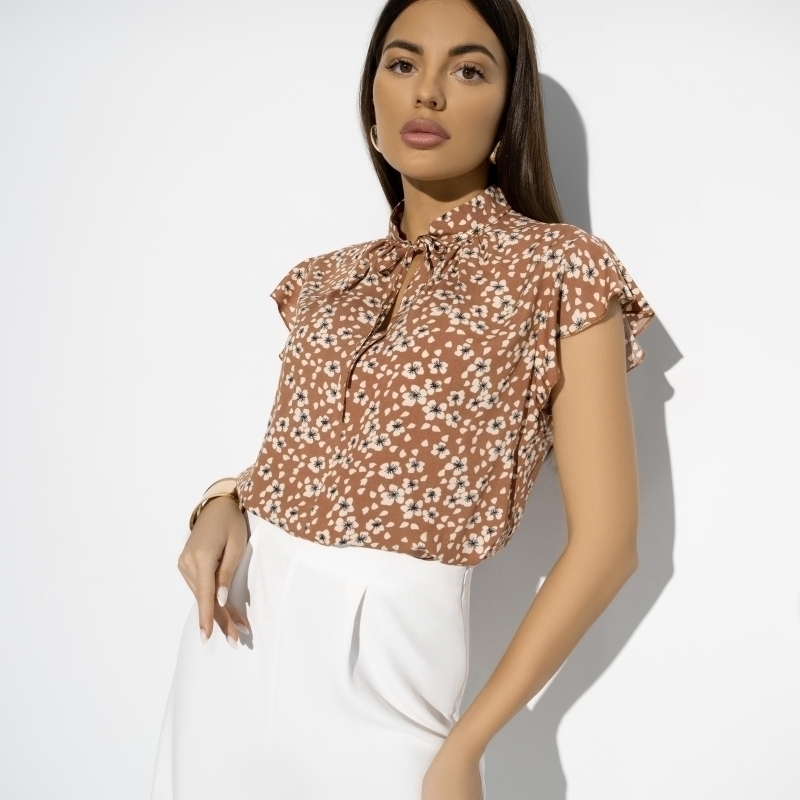 ТН ВЭД: 6206400000. Состав: «Штапель» (100 % вискоза). Плотность ткани: Средняя. Тип ткани: Текстиль. Вид застежки: Завязки. Дополнительный цвет ткани: Бежевый. Карманы: Нет. Основной цвет ткани: Кори... Показать описаниечневый. Отрезная талия: Нет. Подклад: Нет. Резинка по талии: Нет. Рисунок/раппорт: Каждое изделие уникально из-за расположения рисунка на ткани Сезон: Круглогодичный. Силуэт: Свободный. Стиль: Повседневный. Параметры модели на фото: Грудь: 88 см. Талия: 61 см. Бёдра: 89 см. Рост: 170 см. Размер на модели: 44. Длина изделия: * 44 размер - 65 см. * 46 размер - 66 см. * 48 размер - 67 см. * 50 размер - 68 см. * 52 размер - 69 см. * 54 размер - 70 см. Длина рукава: * 44 размер - 7,5 см. * 46 размер - 7,5 см. * 48 размер - 7,5 см. * 50 размер - 7,5 см. * 52 размер - 7,5 см. * 54 размер - 7,5 см. Вес товара, кг: * 46 размер - 0.11. Габариты товара (ДхШхВ), см.: * 46 размер - 32 х 32 х 1. Держать высокую планку – это выбирать овощной салат вместо пасты с беконом и гордо носить блузу с цветочным принтом в каменных джунглях. Рюши и банты – для баланса вашей серьезности. Блуза «Свежая подборка» изготовлена из 100% вискозы, что обеспечивает ей исключительную легкость и комфорт. Штапель — материал, который прекрасно дышит и сохраняет прохладу даже в жаркую погоду. Рюши и банты придают блузе нежность и утонченность, подчеркивая вашу женственность. Эта блуза станет вашим идеальным спутником в теплые летние дни. Цветочный принт делает блузу «Свежая подборка» ярким и запоминающимся элементом вашего гардероба. Она легко комбинируется с различными предметами одежды, будь то джинсы или юбка, и подходит для самых разных случаев — от офисных будней до вечерних прогулок. Элегантные рюши и банты добавляют нарядности, делая ваш образ неповторимым и стильным. Подробное описание: -1474945484