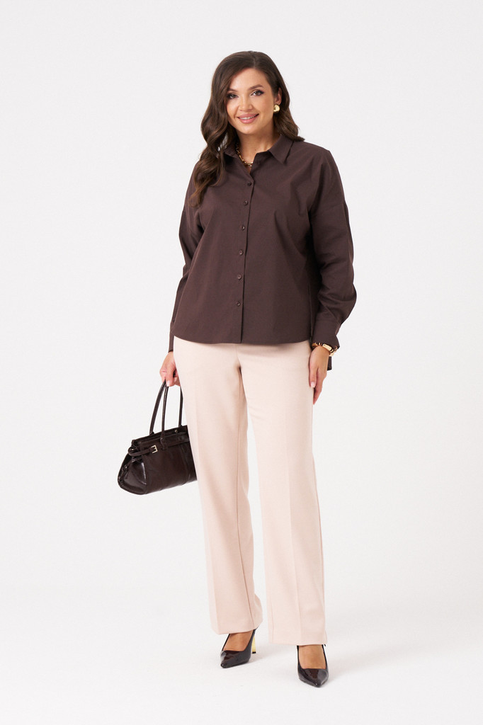 Описание Эта стильная женская блузка бежевого оттенка идеально подойдет для повседневной носки. Выполненная в прямом силуэте, она обеспечивает комфорт и свободу движений. Ткань поливискозная, струящая... Показать описаниеся, что придает изделию легкость и изящность. Перед украшен центральной бортовой застежкой на обметанные петли и пуговицы, а низ изделия выполнен с закругленным краем, добавляя изящества образу. Горловина оформлена классическим рубашечным воротником, а рукава завершены притачными манжетами с застежками на две обметанные петли и пуговицы — практично и стильно. Эта очень легкая и практичная блузка станет отличным выбором для ежедневных образов, сочетая комфорт с элегантностью и привлекательностью. Параметры Рост: 164 44 Блузка: Длина изделия - 72см, Длина рукава - 58см, Обхват шеи - 47.5см, Ширина плеча - 15см, Ширина по груди - 61см, Ширина по низу - 66см, Ширина рукава - 23.2см; 46 Блузка: Длина изделия - 72см, Длина рукава - 58см, Обхват шеи - 48см, Ширина плеча - 15см, Ширина по груди - 63см, Ширина по низу - 68см, Ширина рукава - 24см; 48 Блузка: Длина изделия - 72.5см, Длина рукава - 58см, Обхват шеи - 48.5см, Ширина плеча - 15.2см, Ширина по груди - 65см, Ширина по низу - 70см, Ширина рукава - 24.8см; 50 Блузка: Длина изделия - 72.5см, Длина рукава - 58см, Обхват шеи - 49.5см, Ширина плеча - 15.2см, Ширина по груди - 67см, Ширина по низу - 72см, Ширина рукава - 25.5см; 52 Блузка: Длина изделия - 72.5см, Длина рукава - 58см, Обхват шеи - 50.5см, Ширина плеча - 15.5см, Ширина по груди - 69см, Ширина по низу - 74см, Ширина рукава - 26.2см; 54 Блузка: Длина изделия - 72.5см, Длина рукава - 58см, Обхват шеи - 51см, Ширина плеча - 15.8см, Ширина по груди - 71см, Ширина по низу - 76см, Ширина рукава - 27см; Состав и уход Состав: Вискоза/viscose 59%; целлюлоза/cellulose 41%. Уход: * Стирка при температуре воды до 30°C * Не отбеливать * Гладить при температуре утюга до 110°C * Вертикальная сушка * Барабанная сушка запрещена * Профессиональная сухая чистка в тетрахлорэтилене и во всех растворителях, внесенных в список для символа F.