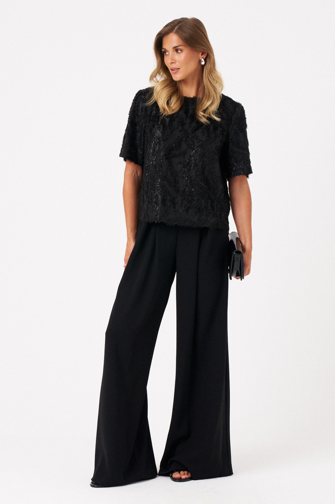 Описание Это женская блузка из поливискозной ткани с лёгки блеском и ворсом. Модель выполнена в прямом силуэте и отличается оригинальным материалом, напоминающим травку, что придает ей свежий и необыч... Показать описаниеный внешний вид. Перед с двумя нагрудными вытачками, которые подчеркивают линию груди и обеспечивают аккуратную посадку. Спинка с средним швом и застежкой-капелькой обеспечивает удобство надевания и комфорт в носке. Горловина чуть расширена, что добавляет образу легкости и элегантности. Короткие втачные рукава делают блузку практичной и универсальной для повседневных образов. Блузка выполнена на трикотажной подкладке, что обеспечивает дополнительный комфорт. Блузка для повседневной либо торжественной носки. Благодаря черному цвету она отлично подходит для создания стильных и комфортных повседневных луков. Параметры Рост: 164 44 Платье: Длина изделия - 59см, Длина рукава - 26.5см, Ширина плеча - 10.6см, Ширина по груди - 51см, Ширина по низу - 52см, Ширина рукава - 18см; 46 Платье: Длина изделия - 59см, Длина рукава - 26.5см, Ширина плеча - 10.8см, Ширина по груди - 53см, Ширина по низу - 54см, Ширина рукава - 18.8см; 48 Платье: Длина изделия - 60см, Длина рукава - 26.5см, Ширина плеча - 11см, Ширина по груди - 55см, Ширина по низу - 56см, Ширина рукава - 19.6см; 50 Платье: Длина изделия - 60см, Длина рукава - 26.5см, Ширина плеча - 11.2см, Ширина по груди - 57см, Ширина по низу - 58см, Ширина рукава - 20.4см; 52 Платье: Длина изделия - 60см, Длина рукава - 26.5см, Ширина плеча - 11.4см, Ширина по груди - 59см, Ширина по низу - 60см, Ширина рукава - 21.2см; Состав и уход Состав: Платье: Полиэстер/polyester 85%; вискоза/viscose 15%.; Подкладка: Полиэстер/polyester 97%; эластан/elastane 3%. Уход: * Стирка при температуре воды до 30°C * Не отбеливать * Гладить при температуре утюга до 110°C * Вертикальная сушка * Барабанная сушка запрещена * Профессиональная сухая чистка в тетрахлорэтилене и во всех растворителях, внесенных в список для символа F.