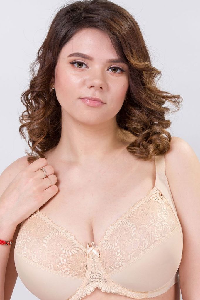 Бюстгальтер из неэластичного кружева и эластичного трикотажного полотна.На каркасах. Чашки из 4-слойного ламинированного полотна. Без поролона. Внутри дублированы хлопком. 32% хлопок, 60% полиамид, 8%... Показать описание эластан.