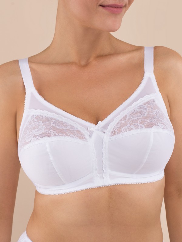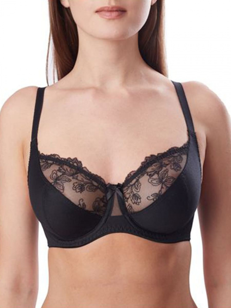 Мягкий бюстгальтер с кружевом. Мягкая чашка с тройным диагональным членением. Универсальный по посадке конструктив гарантирует макcимальный уровень комфорта и функциональности. Верхняя деталь чашки вы... Показать описаниеполнена из неэластичной вышивки, что придает нарядность образу, нижние детали чашки - из функционального трикотажного полотна. Стан маечного типа из функционального сетчатого полотна обеспечивает качественную посадку. Шов на нижней детали чашки расстрочен для минимизации пролегания под одеждой. Состав: 87% полиамид, 6% полиэстер, 7% эластан.