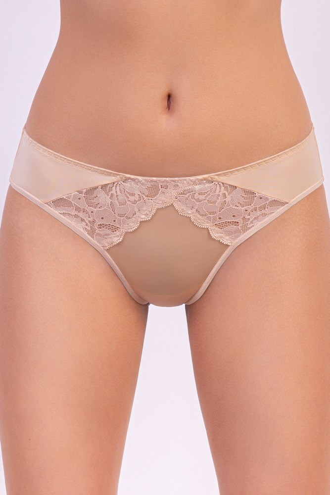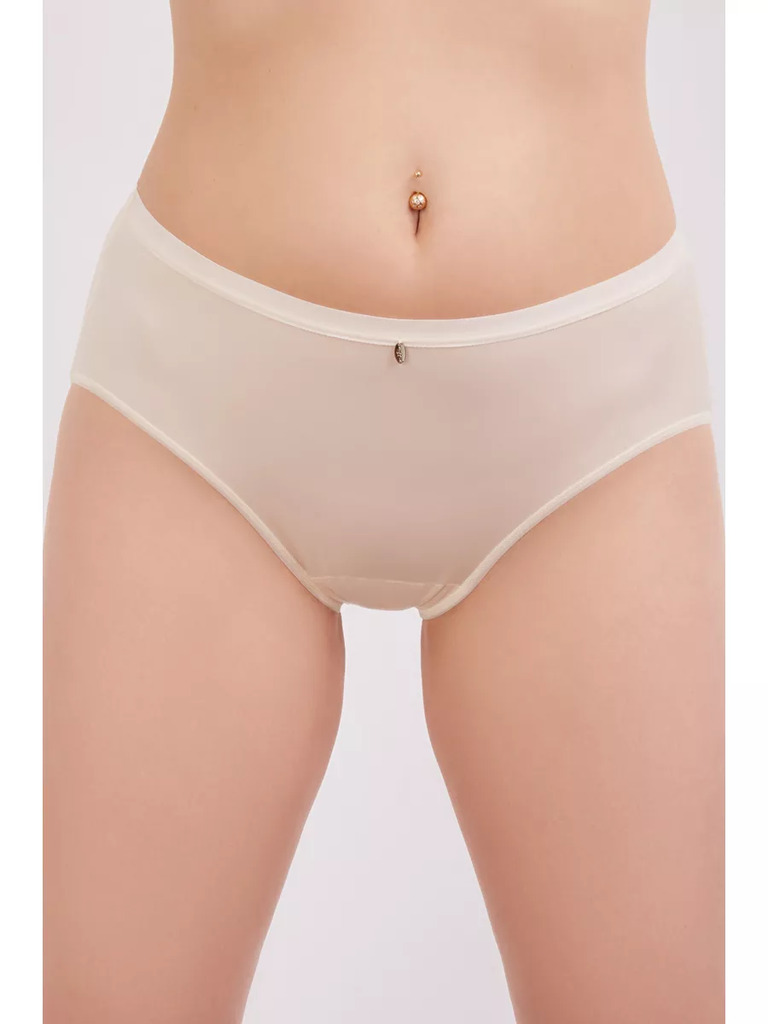 Трусы "бриф" со средней линией талии. Выполнены из эластичного полотна и эластичного кружева. Нижние срезы выполнены в подгибку