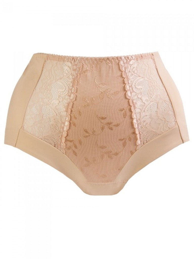 Высокие классические трусики. Выполнены из эластичной микрофибры, эластичного кружева и эластичного жаккардового полотна. Хлопковая ластовица.