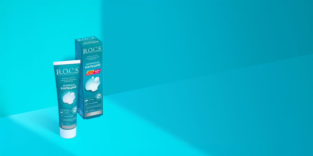 Популярная зубная паста R.O.C.S. Активный кальций — отличный вариант для ежедневного гигиенического ухода за полостью рта. Быстро восстанавливает минерализацию зубов, повышает их устойчивость к кариес... Показать описаниеу и кислотам. Укрепляет эмаль, возвращает ей блеск и белизну, нормализует микрофлору полости рта. Эффективно освежает дыхание. Здоровые зубы — крепкие зубы R.O.C.S.! Рекомендации к применению Рекомендуем чистить зубы 2 раза в день в течение 2-3 минут. Не ополаскивайте рот и воздержитесь от приема пищи и напитков в течение 30-40 минут. Используйте для чистки вертикальные выметающие или круговые движения, избегайте горизонтальных движений вдоль линии десны. Для лучшей гигиены полости рта рекомендуем использовать совместно с ополаскивателем R.O.C.S. Активный кальций.