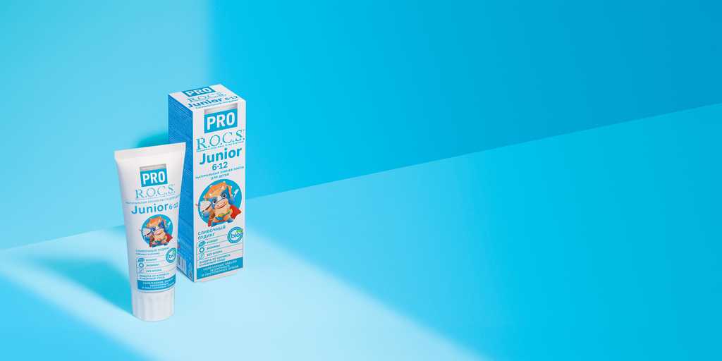 Зубная паста R.O.C.S. PRO JUNIOR Сливочный пудинг разработана специально для детей от 6-ти до 12-ти лет в период смены молочных зубов на постоянные. Защищает десны от воспаления, уменьшая дискомфорт в... Показать описаниео время сменного прикуса. Эффективно очищает и снижает скорость образования зубного налета. Обеспечивает профилактику кариеса и нормализует микрофлору полости рта. Улучшает цвет зубов, придает им естественный блеск и белизну. Безопасна при случайном проглатывании. R.O.C.S. — с детства на всю жизнь! Рекомендации к применению Рекомендуем применять 2 раза в день в течение 2 минут. Помогайте дочищать зубы ребенку до 10 лет, чтобы сформировать правильные навыки чистки. Рекомендуется воздержаться от ополаскивания рта, приема пищи и напитков в течение 30-40 минут. Рекомендуем использовать специализированную зубную щетку R.O.C.S. Junior, она обеспечивает бережный уход, эффективно очищает зубы и не травмирует десны ребенка.