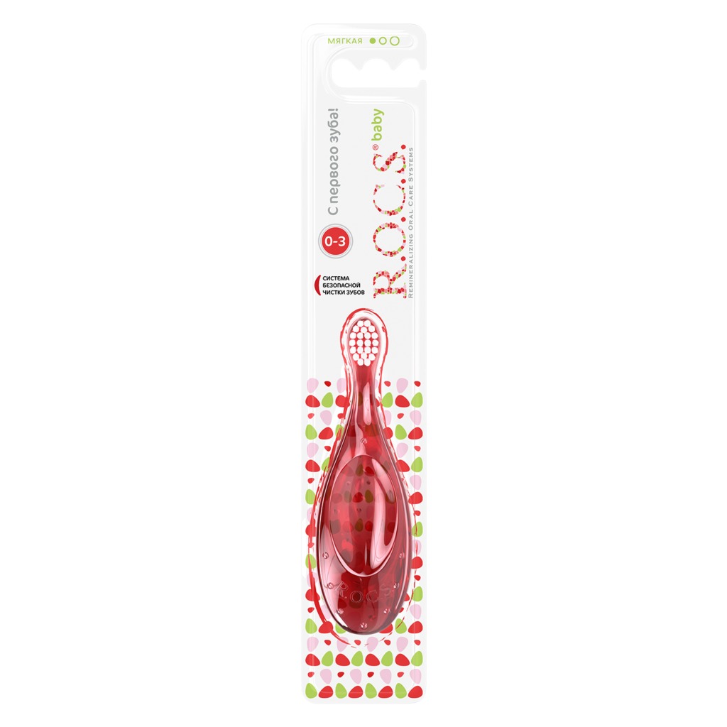Зубная щетка R.O.C.S. Baby — отличное решение для ежедневной гигиены полости рта малышей от 0 до 3 лет. Экстрамягкая щетина с уникальной технологией тройной полировки кончиков исключает возможность по... Показать описаниевреждения твердых тканей или десен. Широкая ручка-кусалка, выполненная из прочного гладкого пластика, препятствует слишком глубокому проникновению в полость рта и травмированию мягких тканей. Эффективно очищает зубы от мягкого налета. Представлена в четырех ярких цветовых вариантах, которые заинтересуют малыша и сделают процесс чистки более приятным. R.O.C.S. — c детства на всю жизнь! Рекомендации к применению После прорезывания первых жевательных зубов рекомендуем использовать небольшое количество зубной пасты Baby совместно с зубной щеткой R.O.C.S. Baby для детей от 0 до 3 лет. Используйте для чистки круговые, выметающие движения от десны без надавливания. Чистка зубов малыша — ответственность родителей. Помогайте чистить зубы и прочищать труднодоступные участки до 10-12 лет, пока у ребенка не сформируется почерк. Это позволит сформировать правильные навыки чистки. Перед началом эксплуатации, а также после каждого использования зубную щетку необходимо тщательно промывать в теплой проточной воде. Хранить зубную щетку рабочей частью вверх отдельно от щеток членов вашей семьи. Рекомендуется менять зубную щетку раз в 3 месяца или раньше при раннем износе щетины, а также после перенесенных инфекционных заболеваний. Цвет в ассортименте.