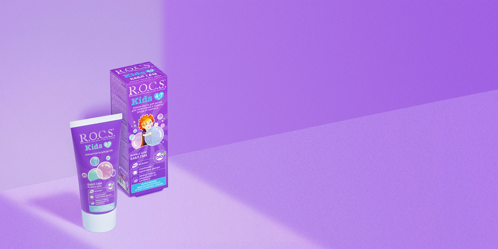 Зубная паста R.O.C.S. Kids «Бабл гам» разработана специально для детей в возрасте от 4 до 7 лет. Обеспечивает качественную гигиену и защиту десен, нормализует микрофлору полости рта. Повышает устойчив... Показать описаниеость эмали к кислотам и эффективно защищает от кариеса благодаря фториду натрия в составе. Способствует глубокой реминерализации эмали. Обладает ярким вкусом жевательной резинки, который мотивирует ребенка на регулярную чистку зубов. R.O.C.S. — с детства на всю жизнь! Рекомендации к применению Рекомендуем применять 2 раза в день в течение 2 минут. Необходимо воздержаться от ополаскивания рта, приема пищи и напитков в течение 30-40 минут. Используйте для чистки вертикальные выметающие или круговые движения, избегайте горизонтальных движений вдоль линии десны. Если ребенок еще не научился сплевывать зубную пасту, рекомендуется использовать пасту без фторидов, например R.O.C.S. Kids «Малиновый смузи». Рекомендуем использовать совместно с зубной щеткой R.O.C.S. Kids для детей от 3 до 7 лет. Помогайте дочищать зубы ребенку до 8-10 лет, чтобы сформировать правильные навыки чистки.