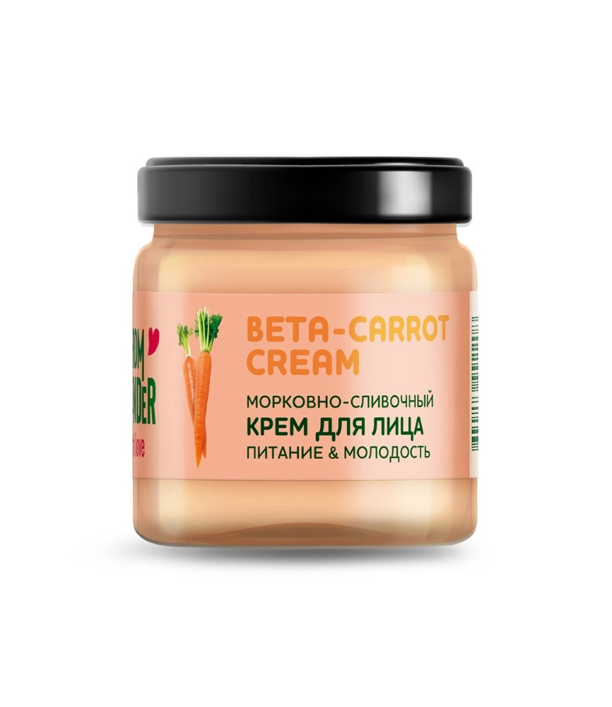 BETTA- CARROT CREAM Морковно-сливочный крем для лица Питание и молодость FROM BLENDER WITH LOVE Внешний вид: Кремовая текстура светло-оранжевого цвета с легким, освежающим запахом. Крем, похожий на мо... Показать описаниерковный фреш со сливками, заряжает кожу энергией и сиянием, даря ей гладкость и лифтинг-эффект. Органический экстракт моркови придает коже невероятную мягкость, а витамины А и В замедляют ее старение. Кожа становится более молодой, упругой и свежей всего за несколько минут! Результат: Кожа увлажненная, более упругая.