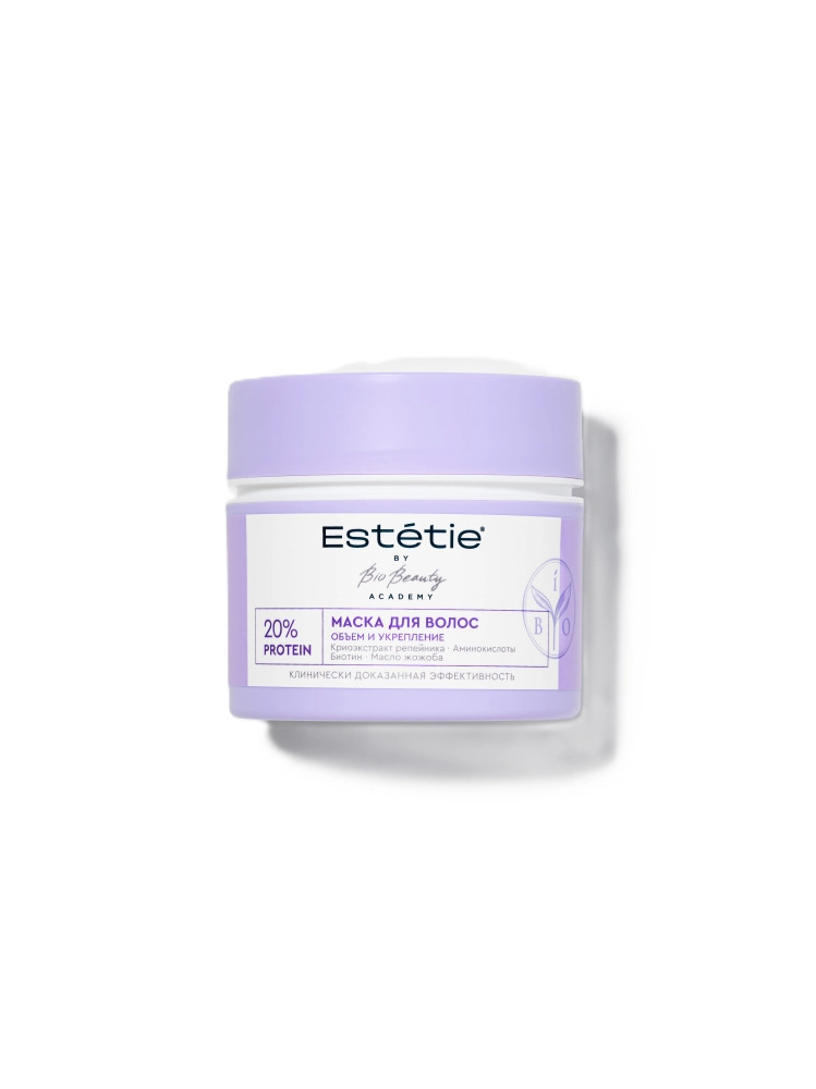 Бренд ESTETIE - экспертная косметика нового поколения, где наука встречается с природой, с клинически доказанной эффективностью от Bio Beauty Academy. Волшебство науки и сила природы для красоты Вашей... Показать описание кожи от лучших экспертов. Estétie - это не просто уход, это философия. Каждое средство Estétie проходит тестирование и подтверждает свою эффективность под контролем дерматологов и трихологов. Каждое средство Estétie - это не просто уход, а ежедневный ритуал заботы о себе, комфортный даже для чувствительной кожи. ESTETIE МАСКА ДЛЯ ВОЛОС ОБЪЕМ И УКРЕПЛЕНИЕ PROTEIN 20% - активная формула маски с легкой текстурой разработана специально для интенсивного укрепления волос без эффекта утяжеления. Внешний вид и свойства: эмульсия белого цвета с фантазийным ароматом Маска для волос возвращает прядям природный блеск и силу, предотвращает ломкость и придает им заметный объем. Биотин - незаменим для красоты и здоровья волос, укрепляет волосяные фолликулы и стимулирует рост. Протеины пшеницы воздействуют на волос изнутри, заполняя микропустоты и восстанавливая его структуру. Масло жожоба и комплекс аминокислот питают и разглаживают волосы, предотвращая появление секущихся кончиков. Специальные особенности: гипоаллергенно Результат: придает природный блеск и силу, предотвращает ломкость и придает им заметный объем