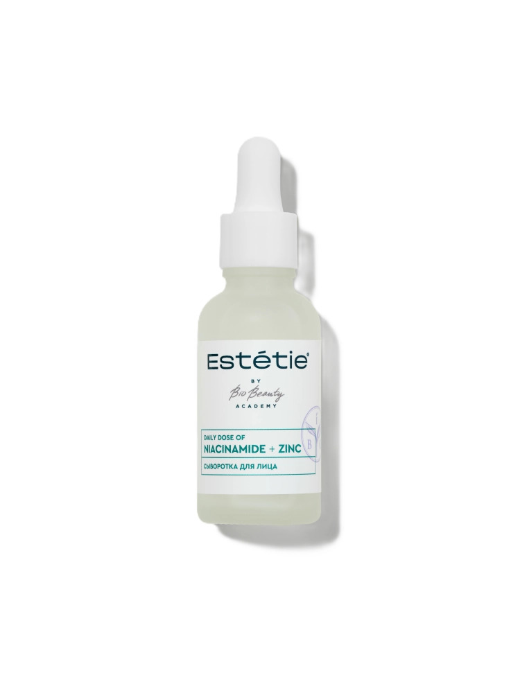 Бренд ESTETIE - экспертная косметика нового поколения, где наука встречается с природой, с клинически доказанной эффективностью от Bio Beauty Academy. Волшебство науки и сила природы для красоты Вашей... Показать описание кожи от лучших экспертов. Estétie - это не просто уход, это философия. Каждое средство Estétie проходит тестирование и подтверждает свою эффективность под контролем дерматологов и трихологов. Каждое средство Estétie - это не просто уход, а ежедневный ритуал заботы о себе, комфортный даже для чувствительной кожи. ESTETIE СЫВОРОТКА ДЛЯ ЛИЦА NIACINAMIDE+ZINC - высококонцентрированная сыворотка cодержит необходимую ежедневную порцию ниацинамида и цинка для вашей кожи Внешний вид и свойства: жидкость бесцветная прозрачная с фантазийным ароматом Сыворотка активно борется с акне, нормализует выработку кожного себума, уменьшая блеск и улучшая кожное дыхание. Ниацинамид увлажняет и улучшает тон кожи, возвращая ей здоровое сияние. Трипептид меди стимулирует синтез коллагена и ускоряет естественные процессы регенерации. Цинк оказывает мощный успокаивающий эффект, регулирует выработку себума. Специальные особенности: гипоаллергенно Результат: улучшено кожное дыхание и уменьшен блеск