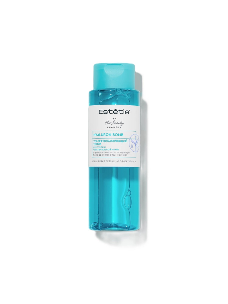 Бренд ESTETIE - экспертная косметика нового поколения, где наука встречается с природой, с клинически доказанной эффективностью от Bio Beauty Academy. Волшебство науки и сила природы для красоты Вашей... Показать описание кожи от лучших экспертов. Estétie - это не просто уход, это философия. Каждое средство Estétie проходит тестирование и подтверждает свою эффективность под контролем дерматологов и трихологов. Каждое средство Estétie - это не просто уход, а ежедневный ритуал заботы о себе, комфортный даже для чувствительной кожи. ESTETIE ТОНИК УЛЬТРАУВЛАЖНЯЮЩИЙ HYALURON BOMB - тоник разработан для многоуровневого и пролонгированного увлажнения кожи, нормализации pH-баланса и увеличения эффективности всех последующих ступеней ухода. Внешний вид и свойства: жидкость голубого цвета с фантазийным ароматом В инновационной формуле соединены компоненты, которые применяются в фармацевтике и имеют клинически доказанную эффективность. Гиалуроновая кислота и коэнзим Q10 обеспечивают глубокое увлажнение и предотвращают потерю влаги. Масло дамасской розы устраняет гиперчувствительность кожи и уменьшает проявление купероза, а пантенол стимулирует регенерацию. Специальные особенности: гипоаллергенно Результат: глубокое увлажнение, предотвращает появление купероза