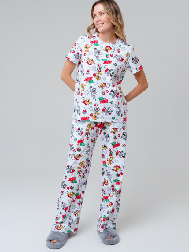 Женская трикотажная пижама Том и Джерри от PlayToday — лёгкая, уютная и яркая. В ней комфортно засыпать, отдыхать дома или проводить ленивые выходные в полной гармонии. Преимущества модели: + удобные ... Показать описаниебрюки на мягкой резинке — посадка без давления + отсутствие карманов — ничто не мешает во время сна + эластичный трикотаж — дышит, приятен к телу и не стесняет движений + футболка прямого кроя — лёгкая и комфортная для сна и отдыха + яркий принт — создаёт настроение и делает образ стильным + универсальный фасон — подходит для сна и как домашний костюм Эта женская трикотажная пижама футболка + брюки создана для максимального комфорта. Мягкий материал не раздражает кожу, сохраняет форму и яркость рисунка даже после множества стирок. Совет по стилю: Пижаму можно носить как комплект для сна или использовать футболку и брюки отдельно. Дополните её уютными тапочками или халатом PlayToday для ещё большего уюта. Размеры: модель доступна в линейке S, M, L. Женская трикотажная пижама от PlayToday — это стильная домашняя одежда, которая подарит комфорт и хорошее настроение каждый день.