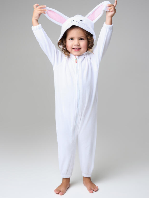 Детский трикотажный кигуруми для девочки от PlayToday — мягкий, как облако, и милый, как пушистый зайка. В нём малышка будет чувствовать себя комфортно и дома, и на празднике, и во время сна. Преимуще... Показать описаниества модели: + застёжка на молнию по всей длине — легко надеть даже на непоседу + мягкий смесовый велюр на хлопковой основе — приятный к телу, дышит и удерживает тепло + декор на капюшоне: вышитая мордашка и ушки зайки — создают игривое настроение + объёмный хвостик на спинке — забавный акцент + низ рукавов и брюк на резинке — удобная посадка и защита от задирания + свободный крой — не сковывает движений + отсутствие карманов — ничего не мешает во время сна или игр Этот кигуруми для девочек сочетает уют и очарование: мягкий велюр нежно касается кожи, не вызывает раздражений и подходит даже для чувствительной кожи. Благодаря хлопковой основе материал дышит, сохраняя комфортную температуру. Застёжка-молния делает переодевание быстрым, а эластичные манжеты и низ брюк обеспечивают идеальную посадку. Совет по стилю: Такой кигуруми можно носить как домашнюю пижаму, карнавальный костюм или уютную одежду для отдыха. Сочетайте с мягкими тапочками или носочками PlayToday для полного комфорта. Размеры: модель представлена на рост 80, 86 и 92 см — подходит для девочек от 1 года до 3 лет. Модный детский кигуруми в виде зайки для девочки от PlayToday — это тепло, нежность и улыбки каждый день.