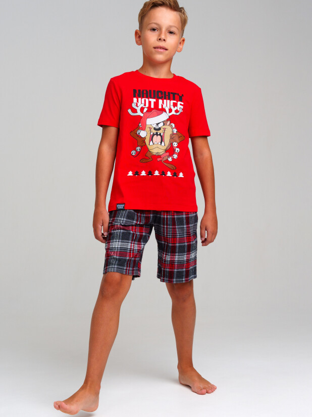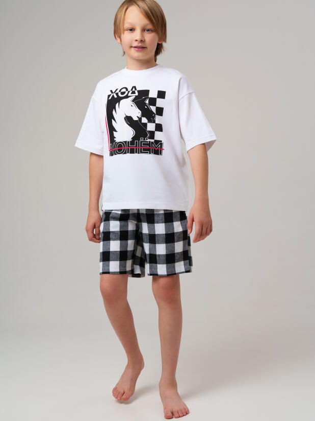 Стильная подростковая пижама для мальчика от PlayToday — лёгкий комплект из хлопковой футболки и удобных текстильных шорт в клетку. Отличный выбор для сна, отдыха дома и летних пижамных вечеринок. Пре... Показать описаниеимущества модели: + футболка из мягкого хлопкового трикотажа — комфорт и воздухопроницаемость + шорты с микроначёсом — приятные к телу и сохраняют тепло в прохладные вечера + пояс на резинке со шнурком — регулируемая посадка под рост ребёнка + 2 кармана — удобно для дома и отдыха + стильный клетчатый принт на шортах — модный акцент в гардеробе подростка Когда и как носить: Пижама подходит для сна, отдыха дома, загородных поездок и летних пижамных вечеринок. Лёгкая футболка и практичные шорты обеспечивают свободу движений и уют в любое время суток. Совет по стилю: Сочетайте пижаму с мягкими тапочками или домашним халатом PlayToday для ещё большего комфорта. Размеры: 128–176 см — подойдёт мальчикам от 8 лет и старше. Стильная подростковая пижама для мальчиков от PlayToday — комфорт и свобода движений каждый день.
