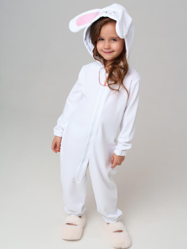 Детский трикотажный кигуруми для девочки от PlayToday — уютный и сказочный образ для сна, домашних игр и праздников. Модель выполнена из мягкого велюра, приятного на ощупь и безопасного для нежной дет... Показать описаниеской кожи. Застёжка на молнию по всей длине позволяет легко и быстро переодевать ребёнка, а эластичные манжеты на рукавах и брючинах обеспечивают комфортную посадку. Преимущества модели: + застёжка на молнию — удобно для самостоятельного переодевания + мягкий велюр — тёплый, приятный и дышащий материал + манжеты на рукавах и брючинах — фиксируют изделие и не дают ткани задираться + милый декор — вышивка мордочки зайки, длинные ушки на капюшоне и хвостик сзади создают сказочный образ + свободный крой — не стесняет движений во время сна и игр Кигуруми PlayToday превращает каждый вечер в настоящее приключение. Девочка может чувствовать себя героиней сказки, а мягкий велюр подарит уют и тепло даже в прохладное время года. Совет по стилю: Кигуруми PlayToday можно носить как домашнюю одежду для сна, игр и уютных вечеров, а также использовать как карнавальный костюм для праздников и утренников. Размеры: 98, 104, 110, 116 и 122 см — подходят для девочек от 3 до 7 лет. Уютный и волшебный кигуруми для девочки от PlayToday — лучшее решение для сна, домашних игр и праздничных образов.