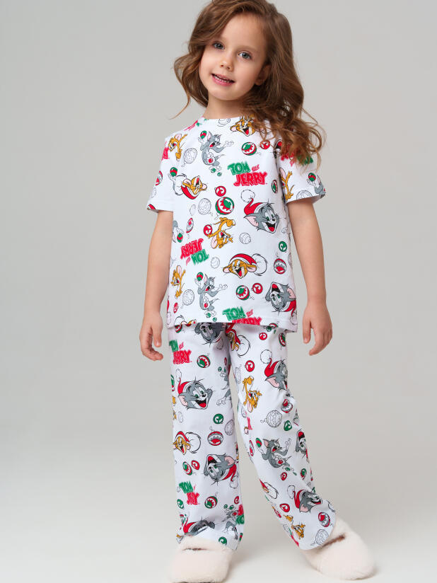 Детская трикотажная пижама для девочки с героями Том и Джерри от PlayToday — яркий и уютный вариант для сна и отдыха дома. В комплект входит футболка с коротким рукавом и прямые брюки на мягкой резинк... Показать описаниее со шнурком для регулировки. Яркий лицензионный принт с любимыми персонажами делает пижаму особенно привлекательной для детей. Преимущества модели: + брюки на удобной резинке со шнурком — комфортная посадка и лёгкость переодевания + мягкий хлопковый трикотаж — приятный к телу, дышащий материал для спокойного сна + отсутствие карманов — ничего не мешает во время сна + яркий принт Том и Джерри — любимые герои всегда рядом + свободный крой — не сковывает движений во время отдыха и игр дома Пижама PlayToday создана для того, чтобы сон был комфортным, а вечерние ритуалы превращались в радость. Благодаря яркому принту с Томом и Джерри она станет любимым комплектом девочки и для сна, и для домашних игр. Совет по стилю: Пижаму PlayToday можно носить не только как ночной комплект, но и как уютный домашний костюм для вечерних игр или просмотра мультфильмов. Размеры: 98, 104, 110, 116 и 122 см — подходят для девочек от 3 до 7 лет. Уютная и яркая трикотажная пижама для девочки с Том и Джерри от PlayToday — лучшее решение для сна и домашнего отдыха.